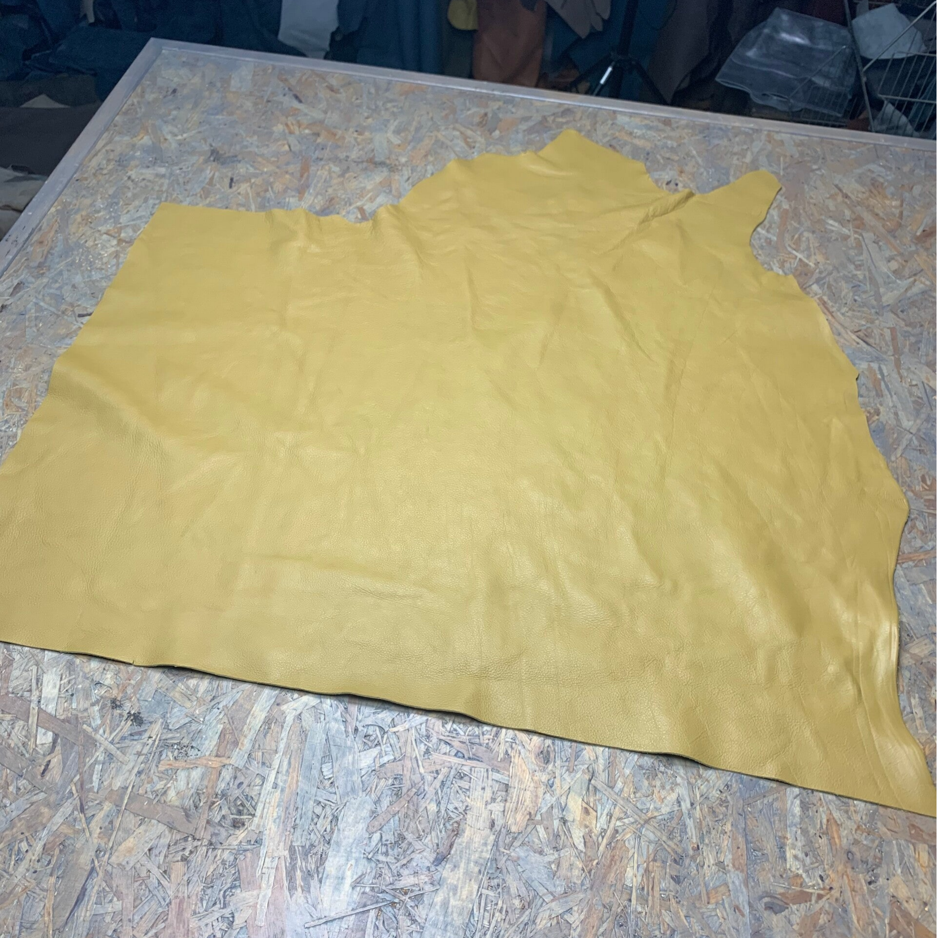Een soepele lente gele leren lap, met een wat grover gedeelte