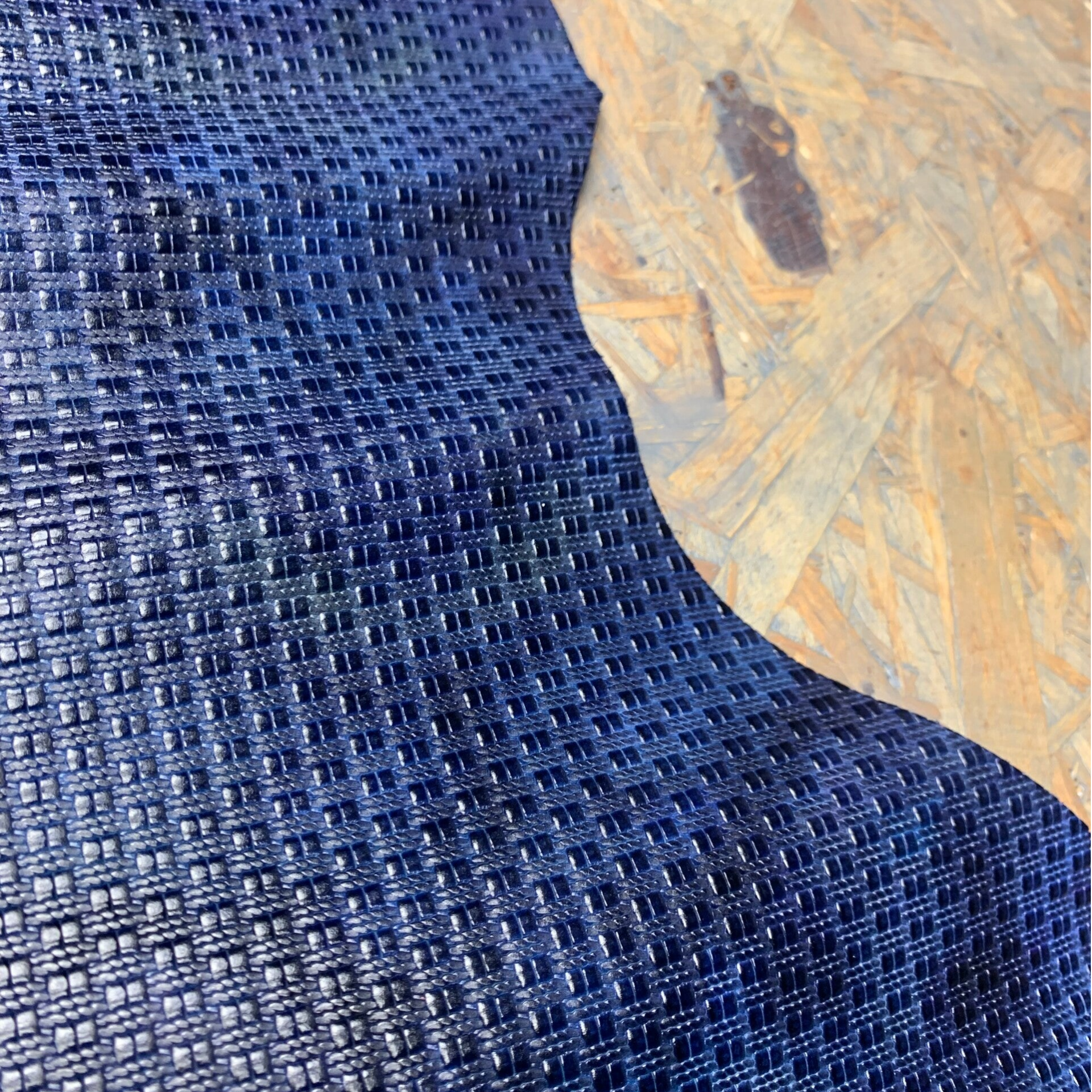 Een stevige blauwe leren lap met rechthoekjes