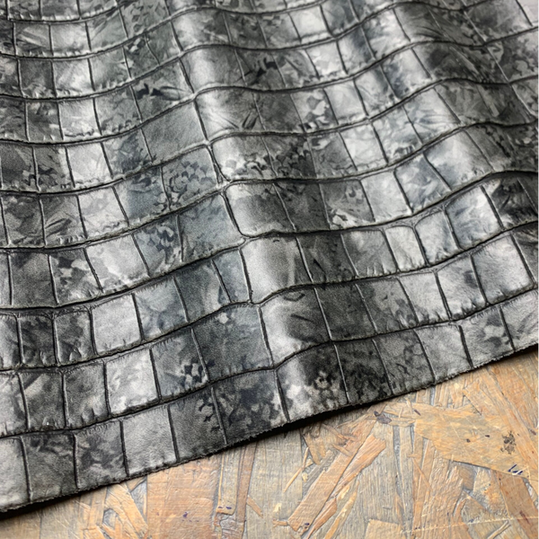 Een stevige donker en li-grijze croc leren lap