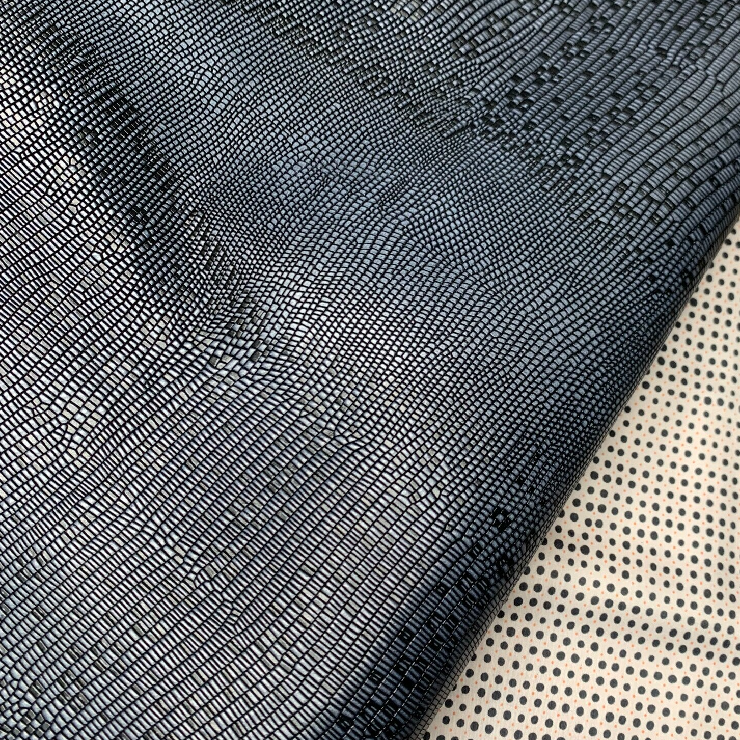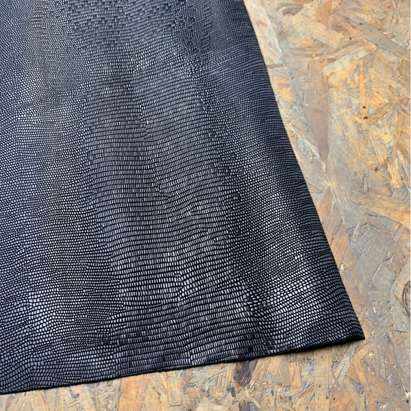 Een ietswat stugge zwart-grijs reptiel leren lap
