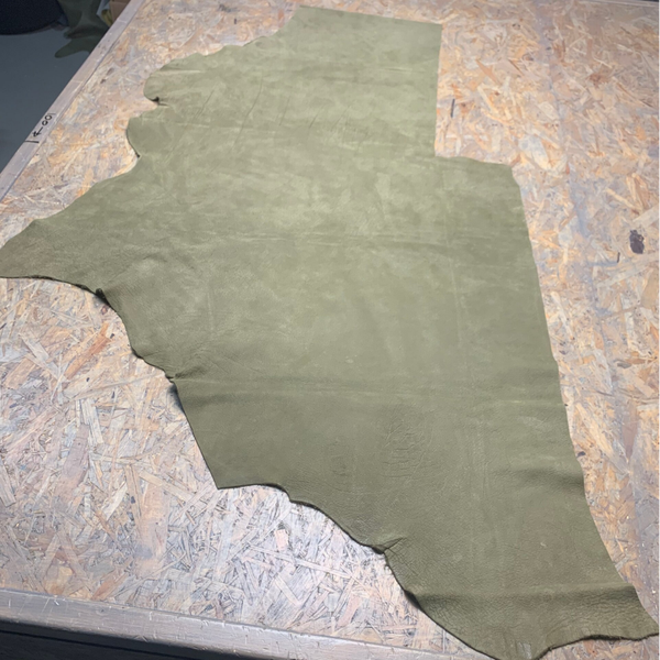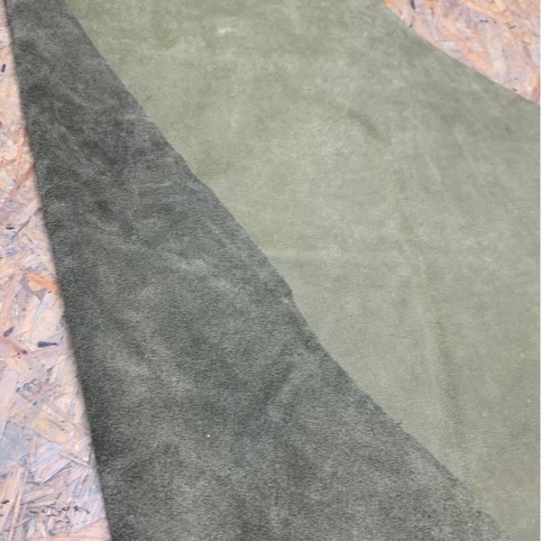 Een soepele kneedbare olijfgroene leren lap met donkere achterkant