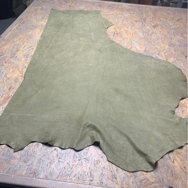 Een soepele kneedbare olijfgroene leren lap met donkere achterkant