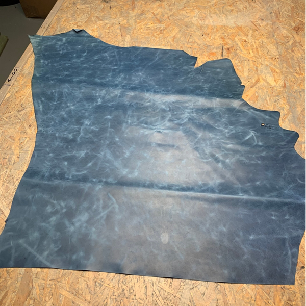 Een stugge gladde azuurblauwe gemeleerde leren lap