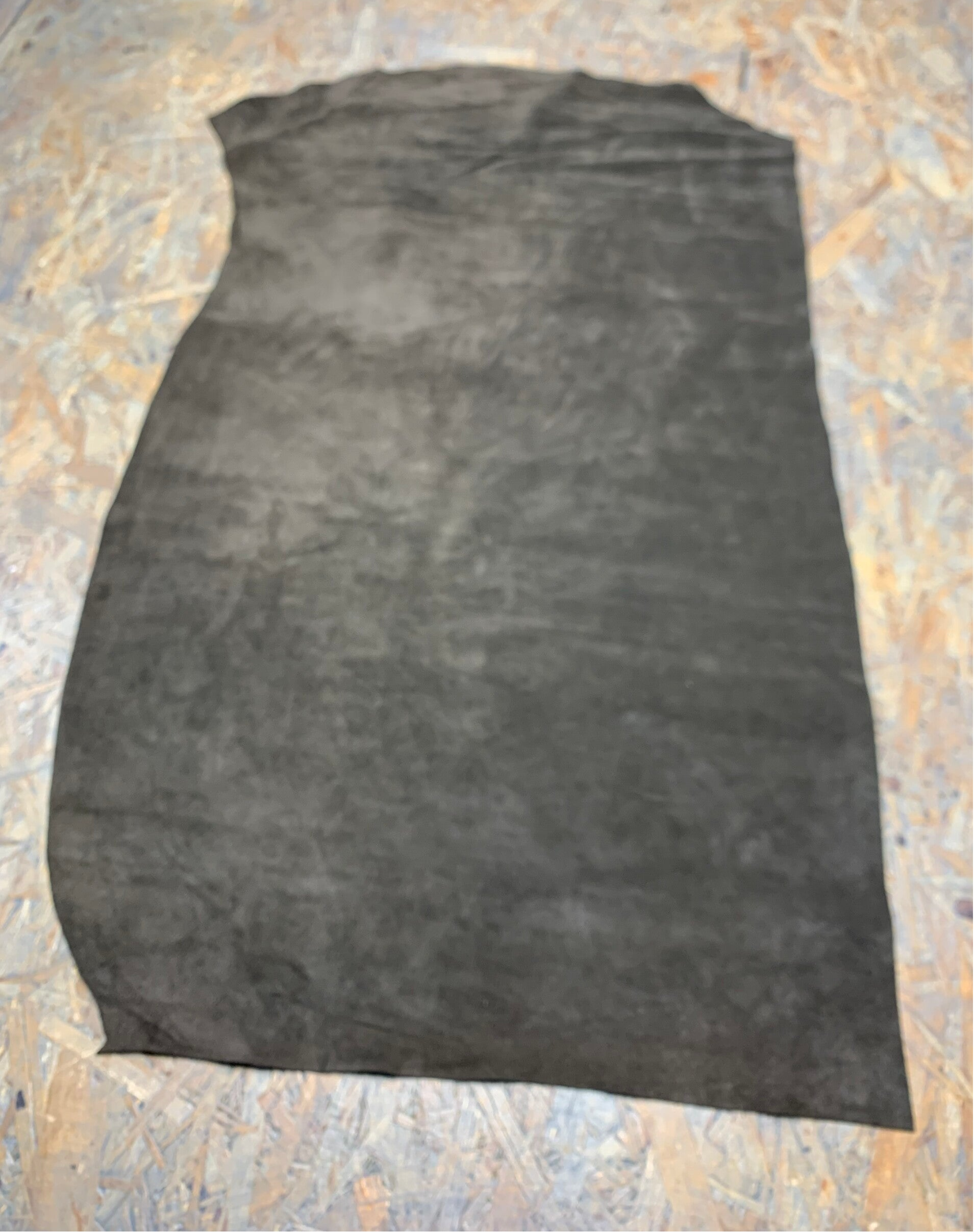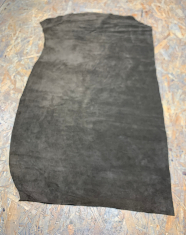 Een soepele suede donkerbruine leren lap met mooie achterkant