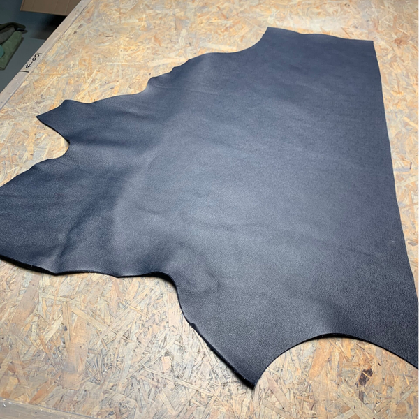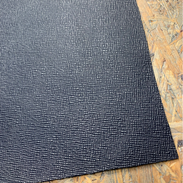 Een dikke standige donkerblauw bewerkte leren lap