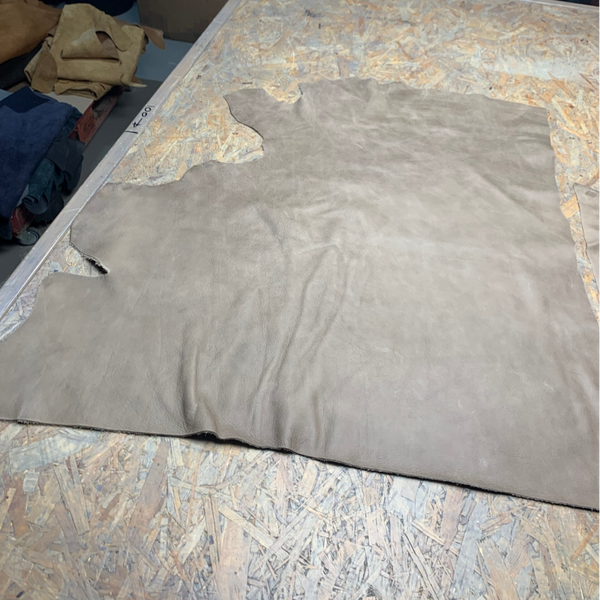 Twee stevige doch soepele beetje vintage taupe kleurige leren lappen