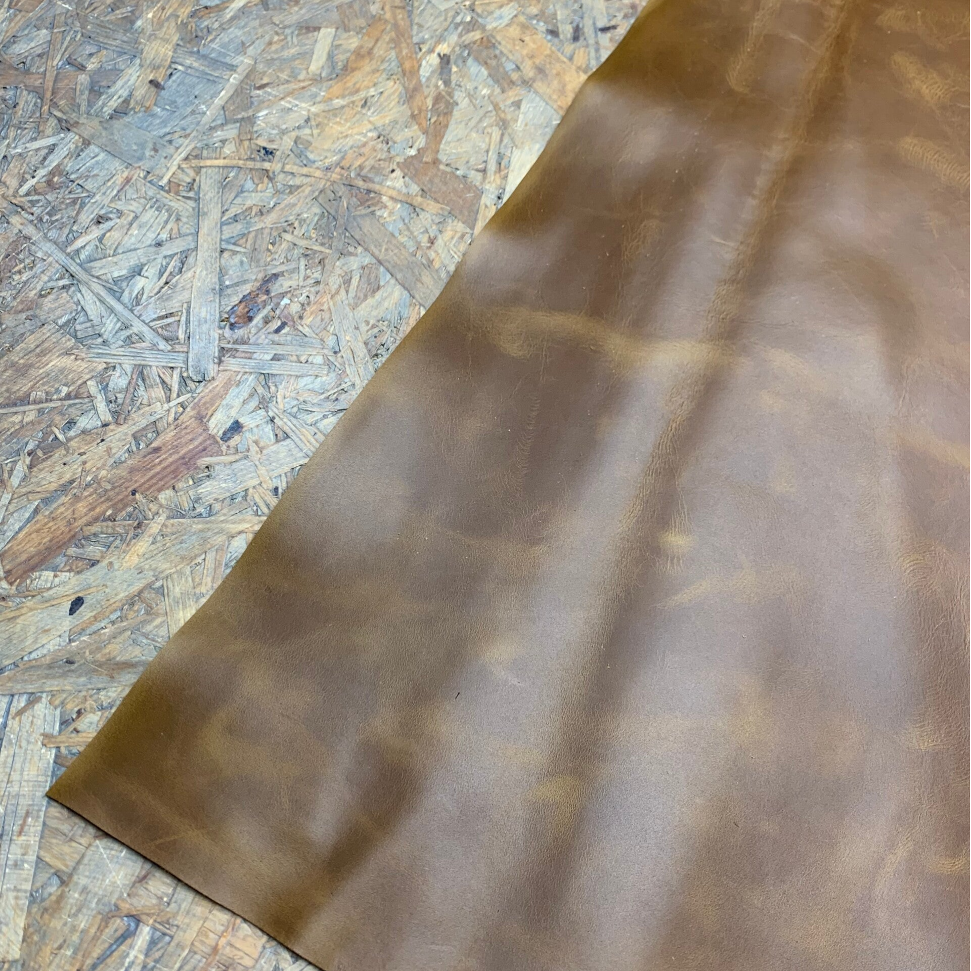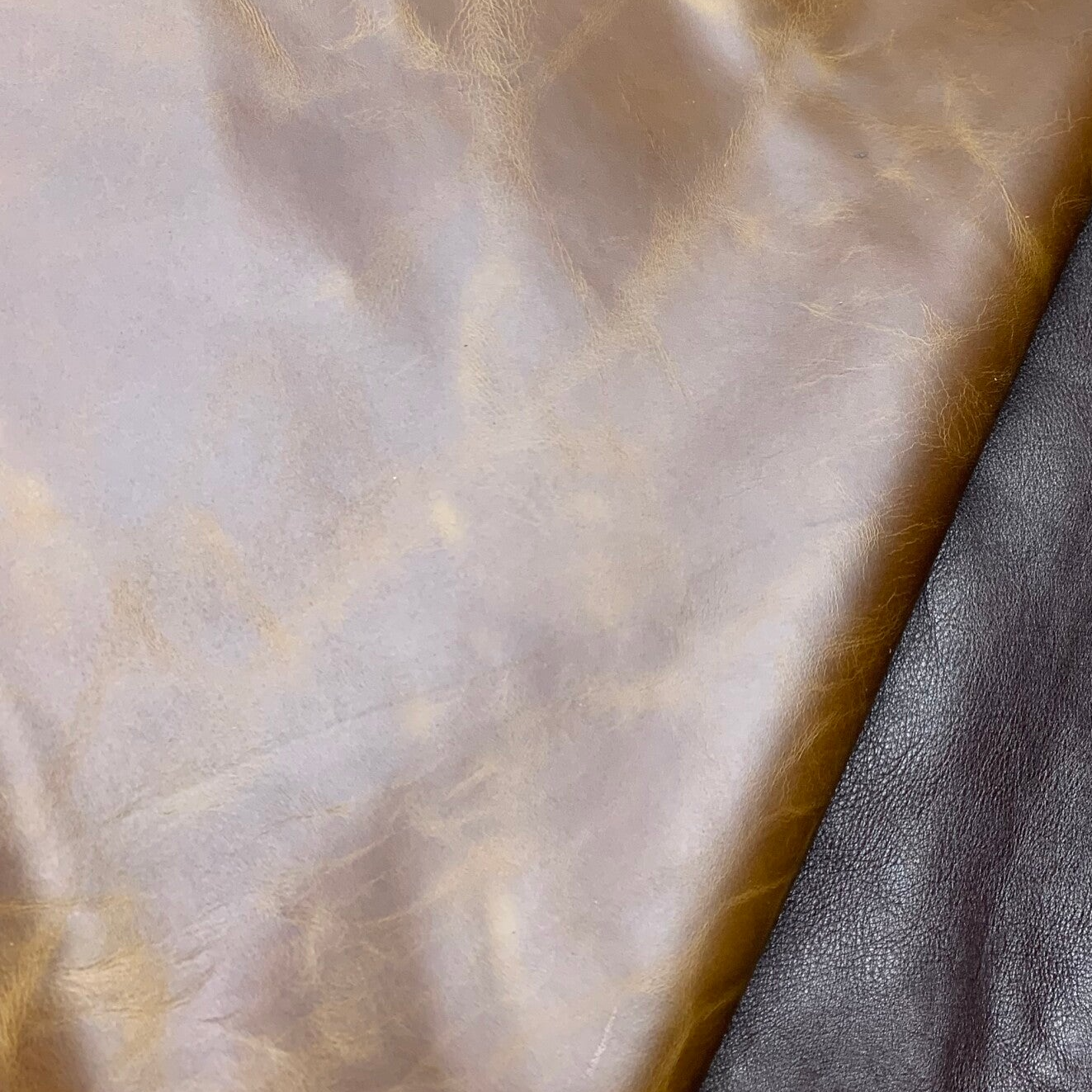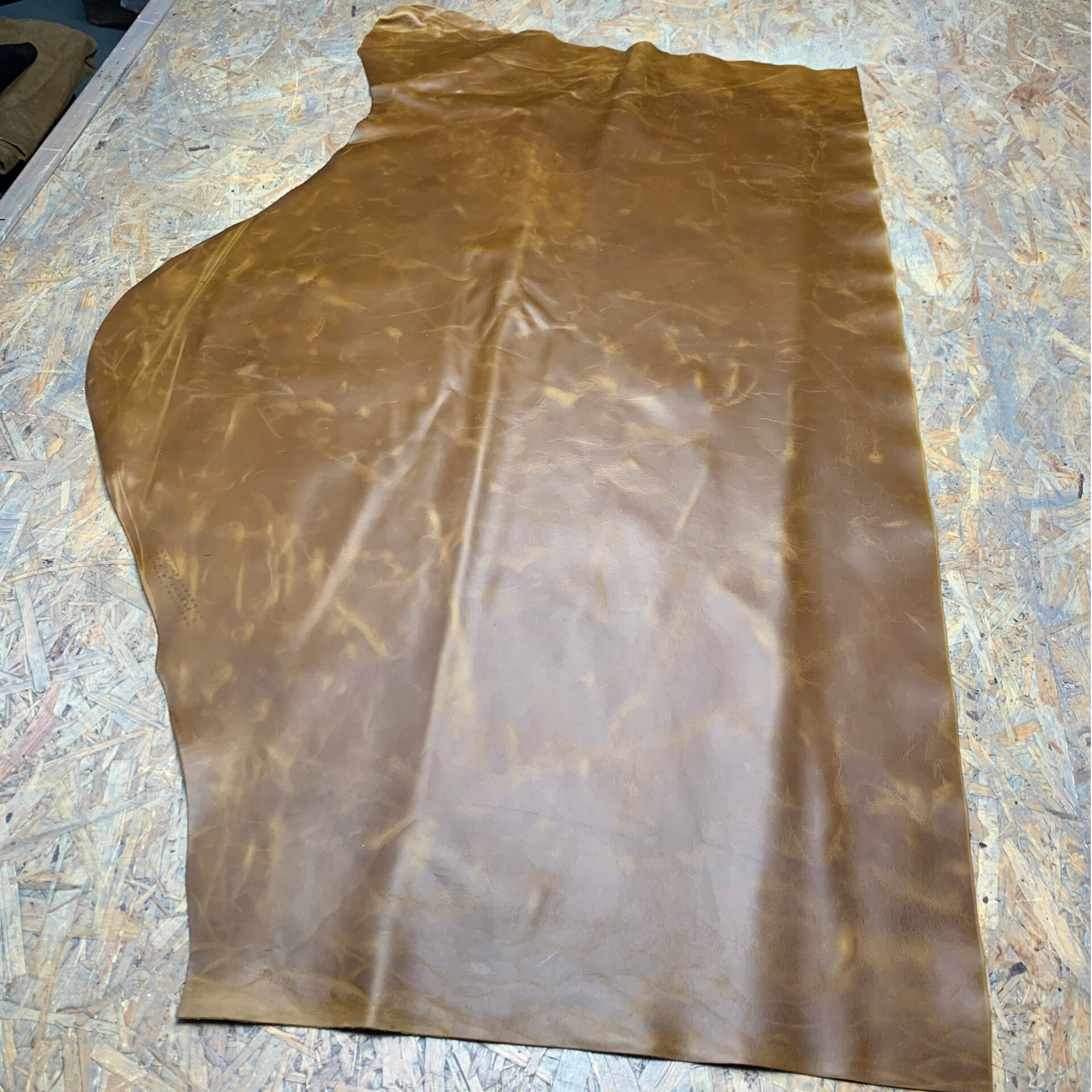 Een licht standige pull-up cognac gemeleerde leren lap met lichte achterkant