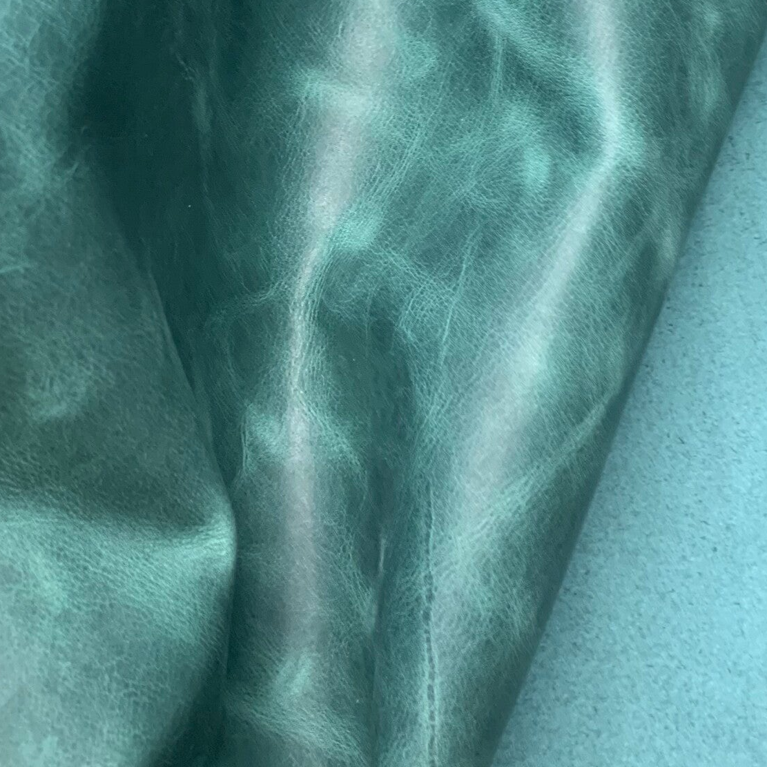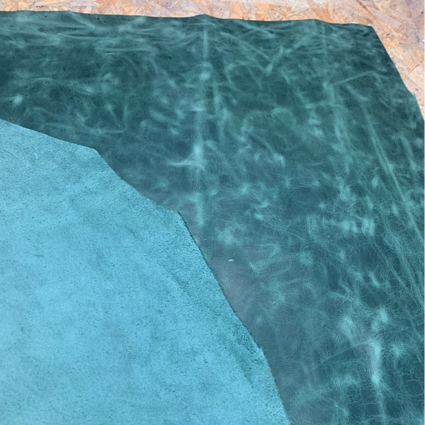 Een gladde groene gemeleerde leren lap met prachtige achterkant