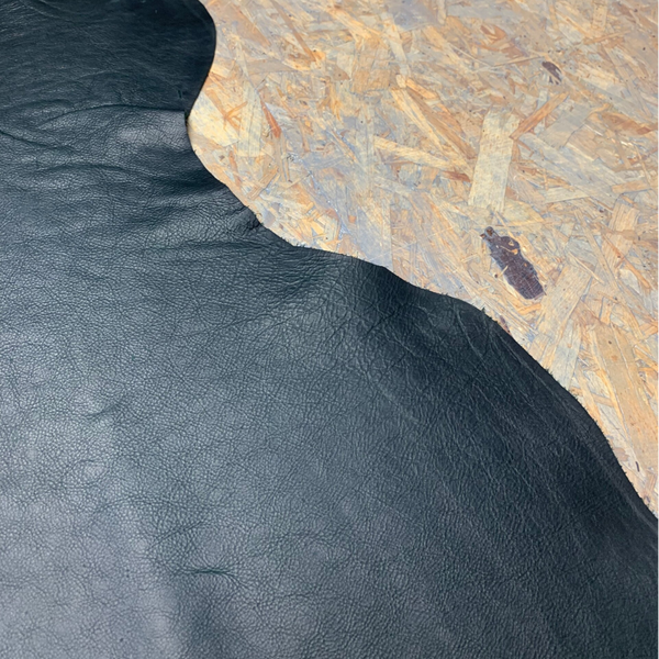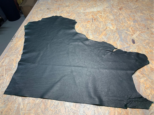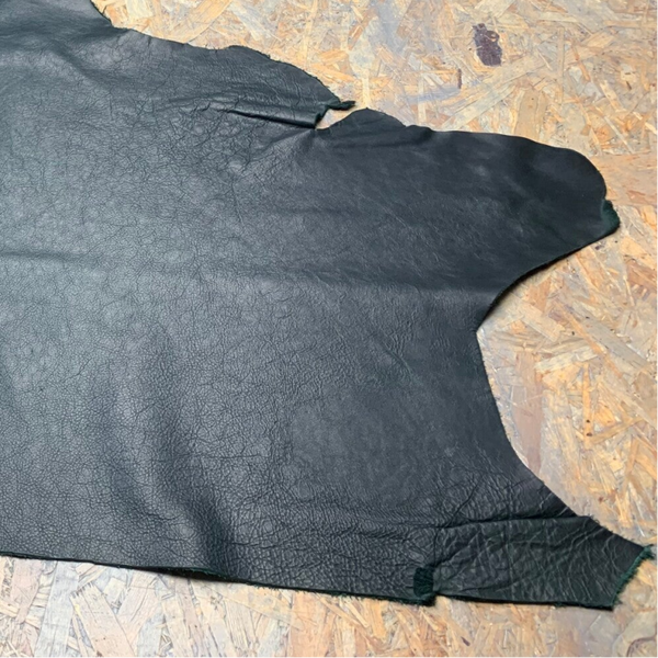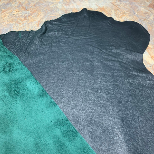 Een prachtige pull-up intens donkergroene leren lap met felgroene achterkant