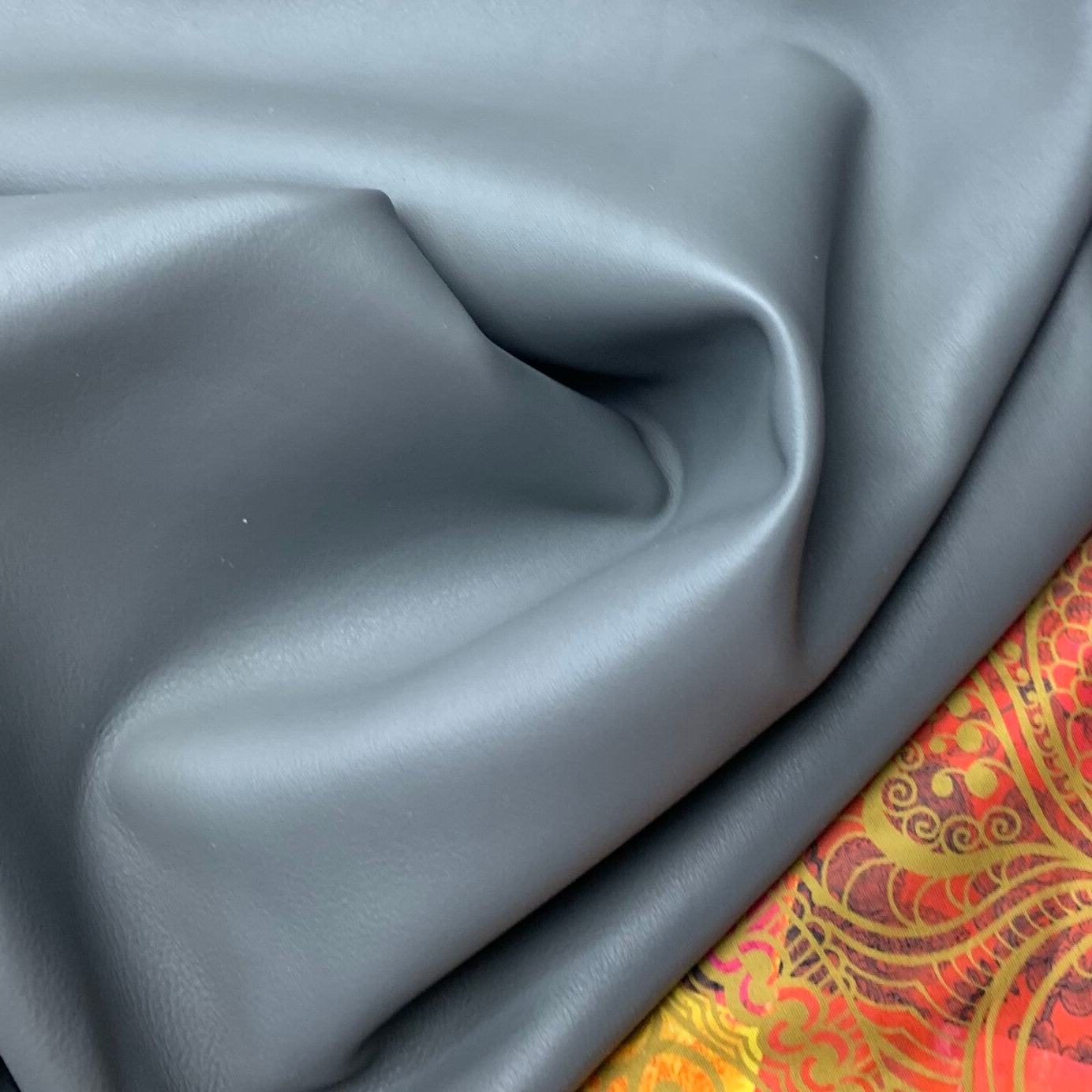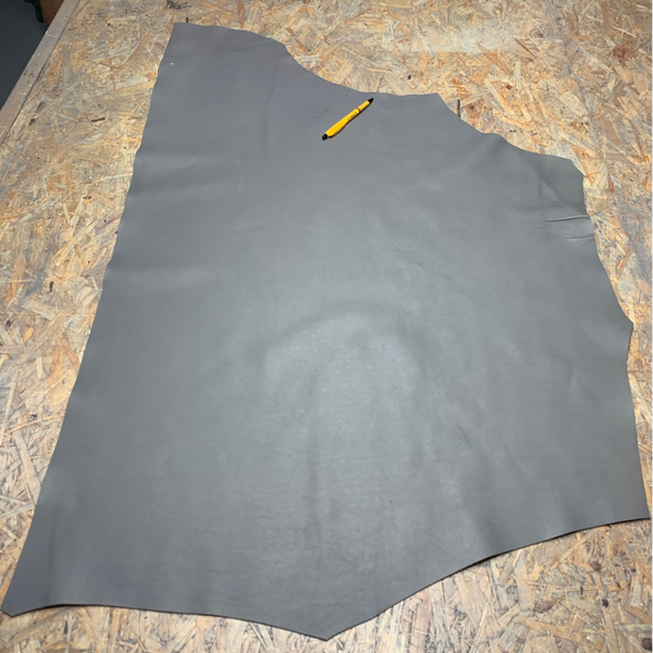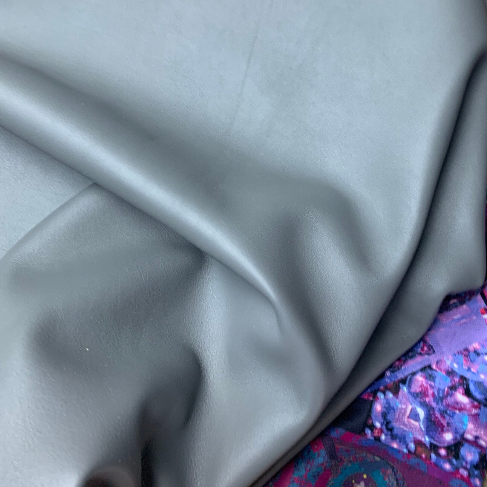 Een prachtige soepele muisgrijze leren lap met lichte achterkant