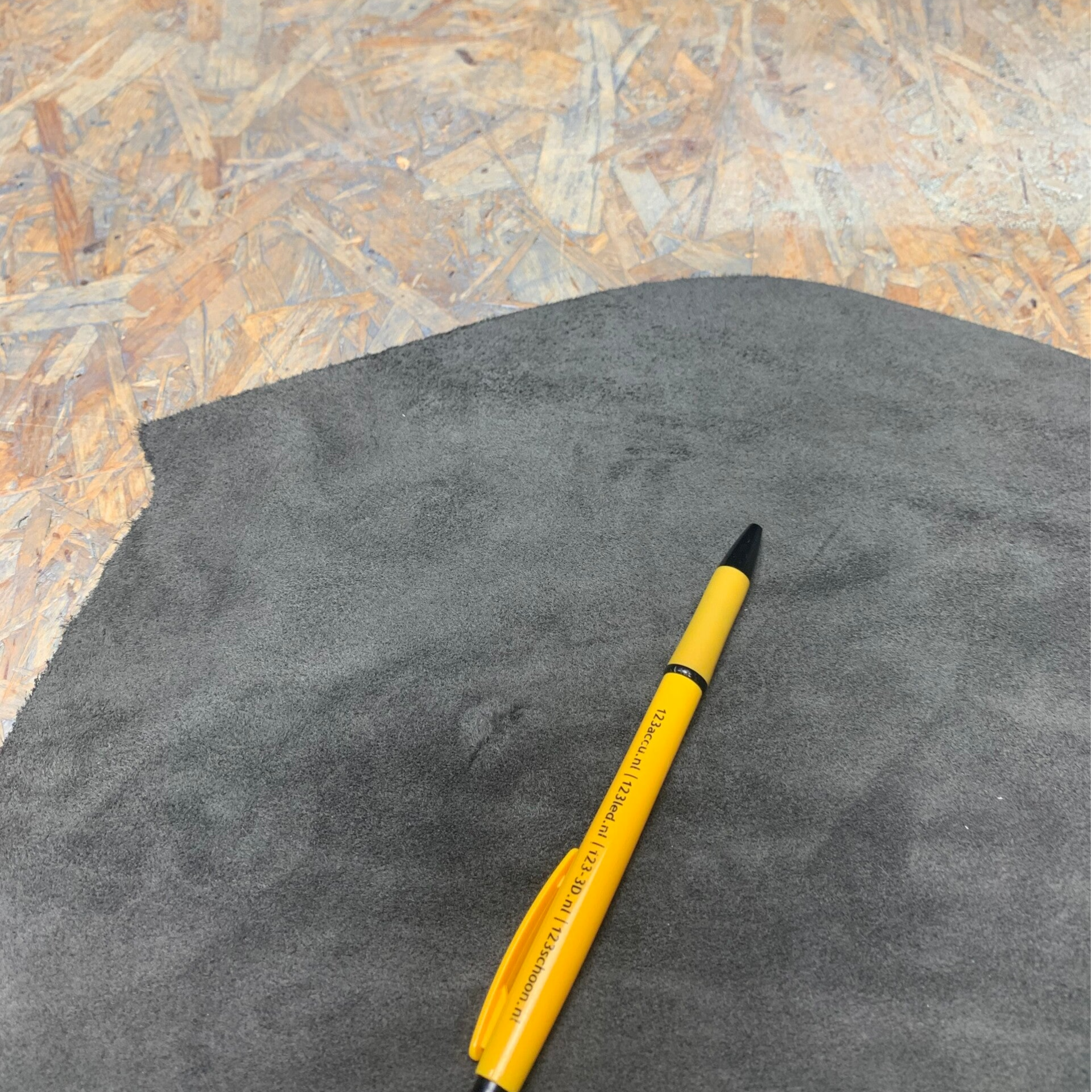 Een stevige suede grijze leren lap met mooie achterkant