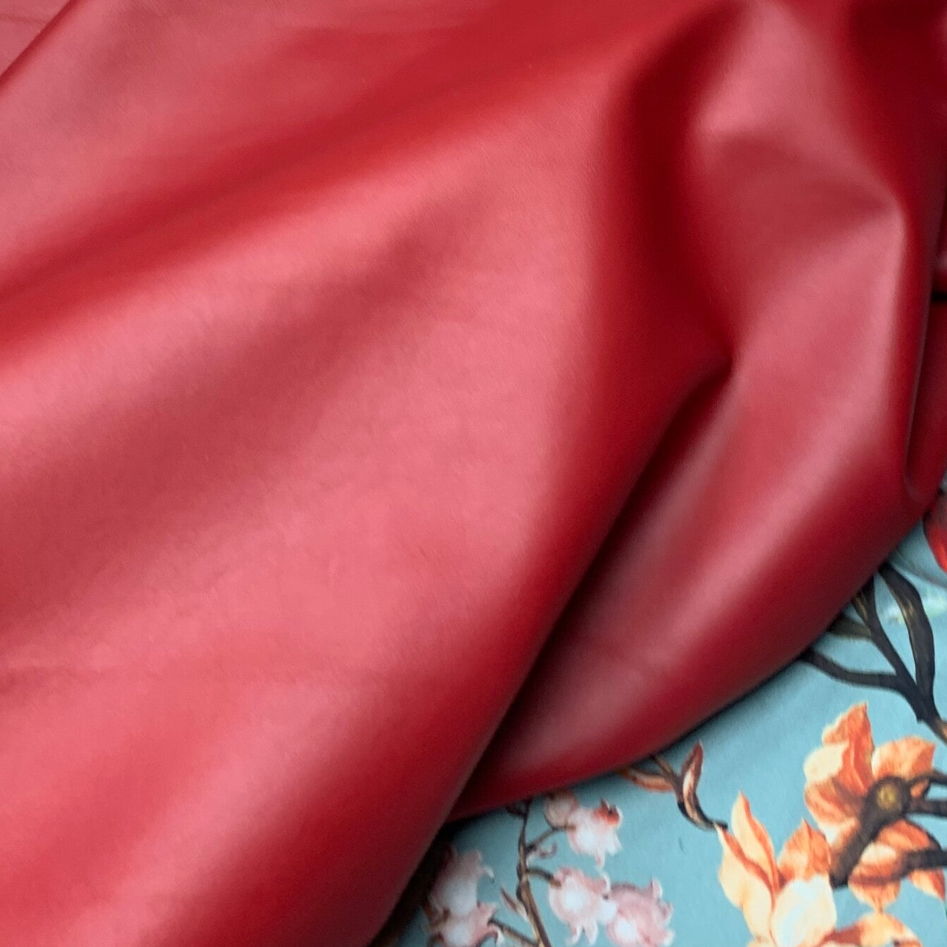 Hoogwaardige kwaliteit soepel en zacht dieprood rundleer, voelt als prachtig kalfsleer, met mooie achterkant