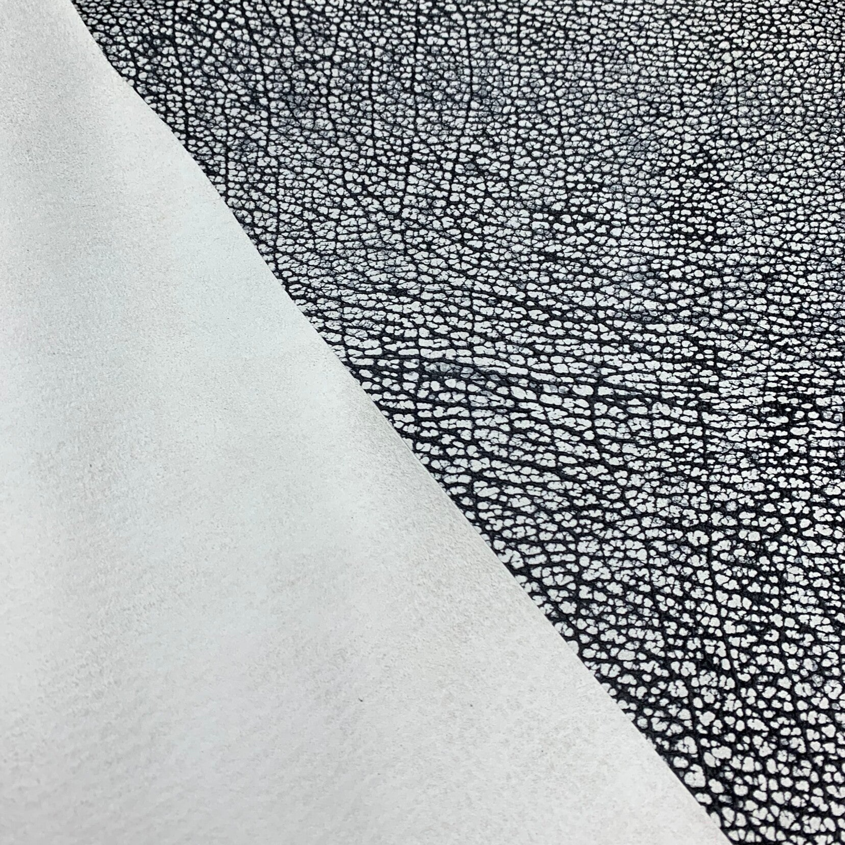 Een stevige doch soepele zwart witte wirwar patroon leren lap