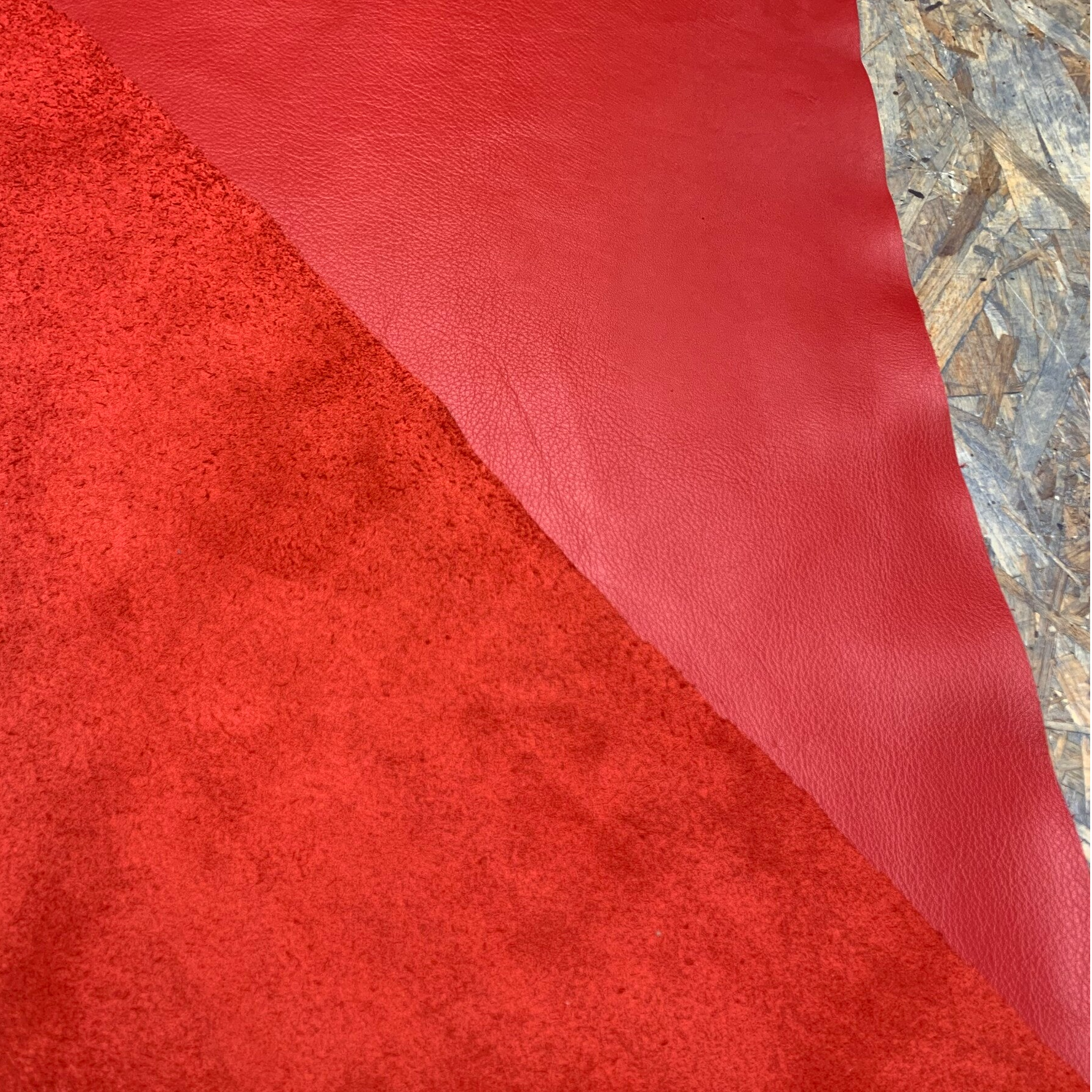 Hoogwaardige kwaliteit soepel en zacht knalrood rundleer, voelt als prachtig kalfsleer, met mooie achterkant