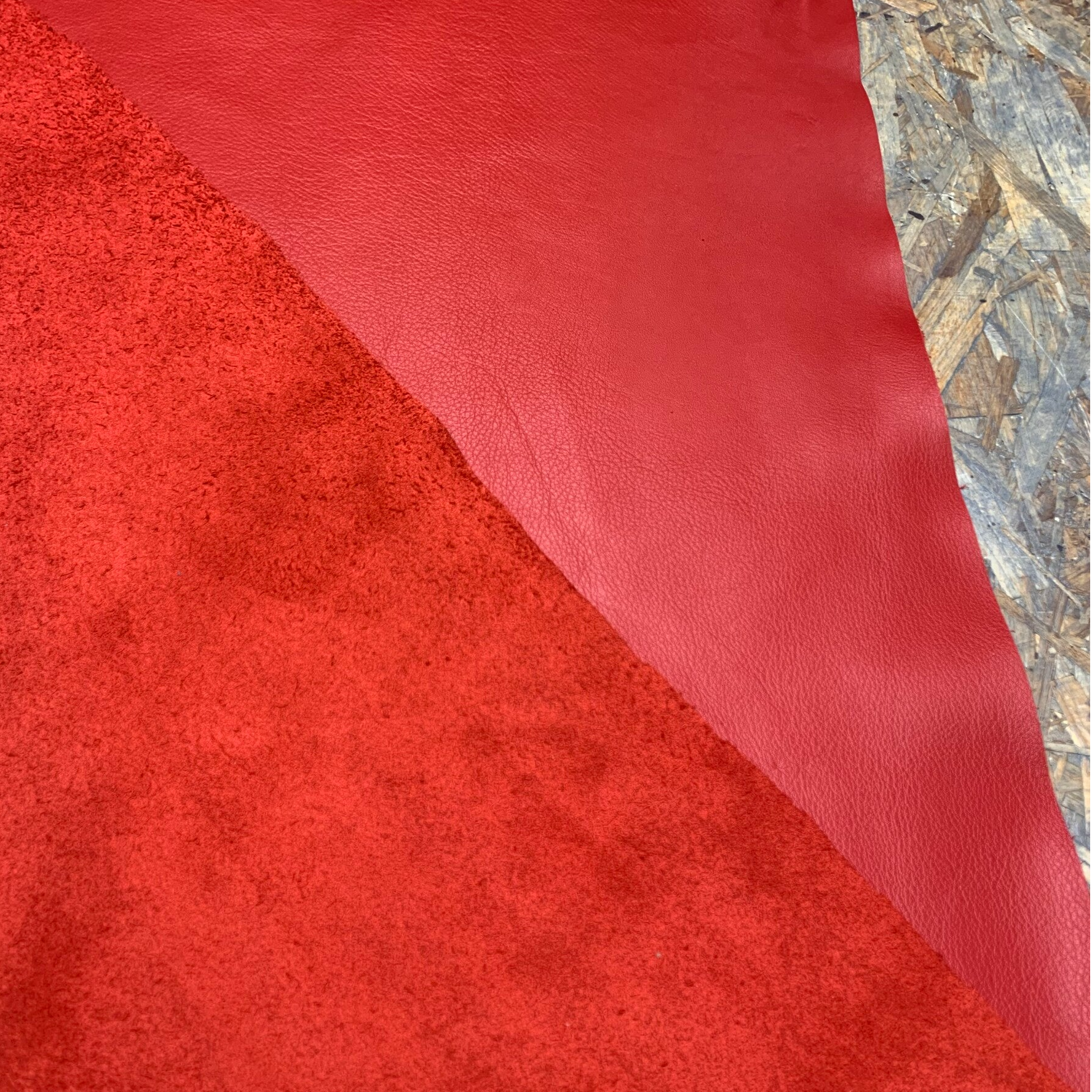 Hoogwaardige kwaliteit soepel en zacht knalrood rundleer, voelt als prachtig kalfsleer, met mooie achterkant