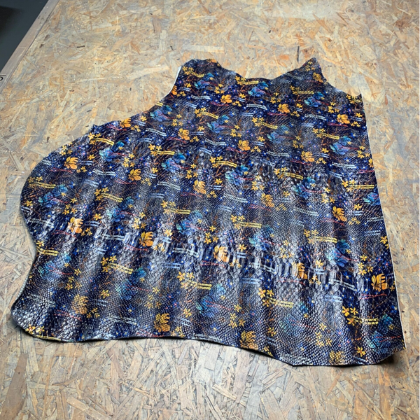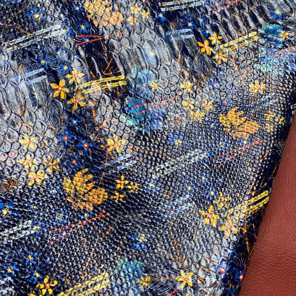 Een stugge oranje blauwe herfstprint leren lap