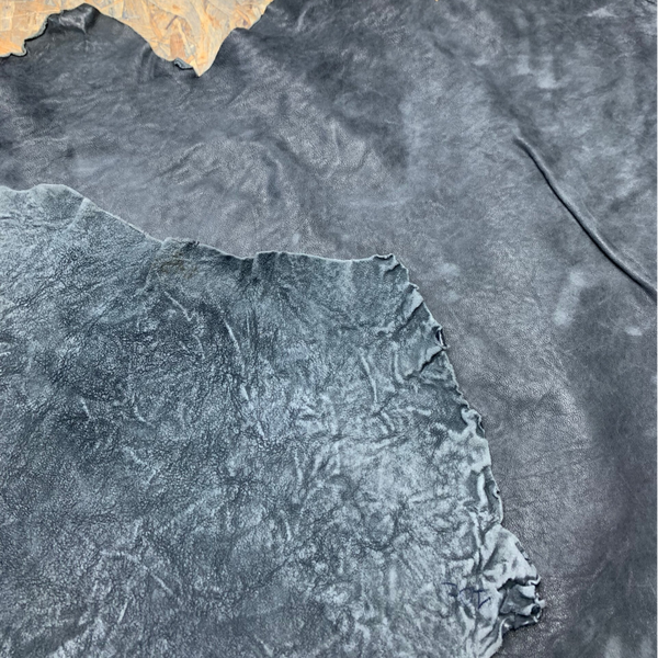 Een prachtig blauw geitenlapje met bruikbare achterkant