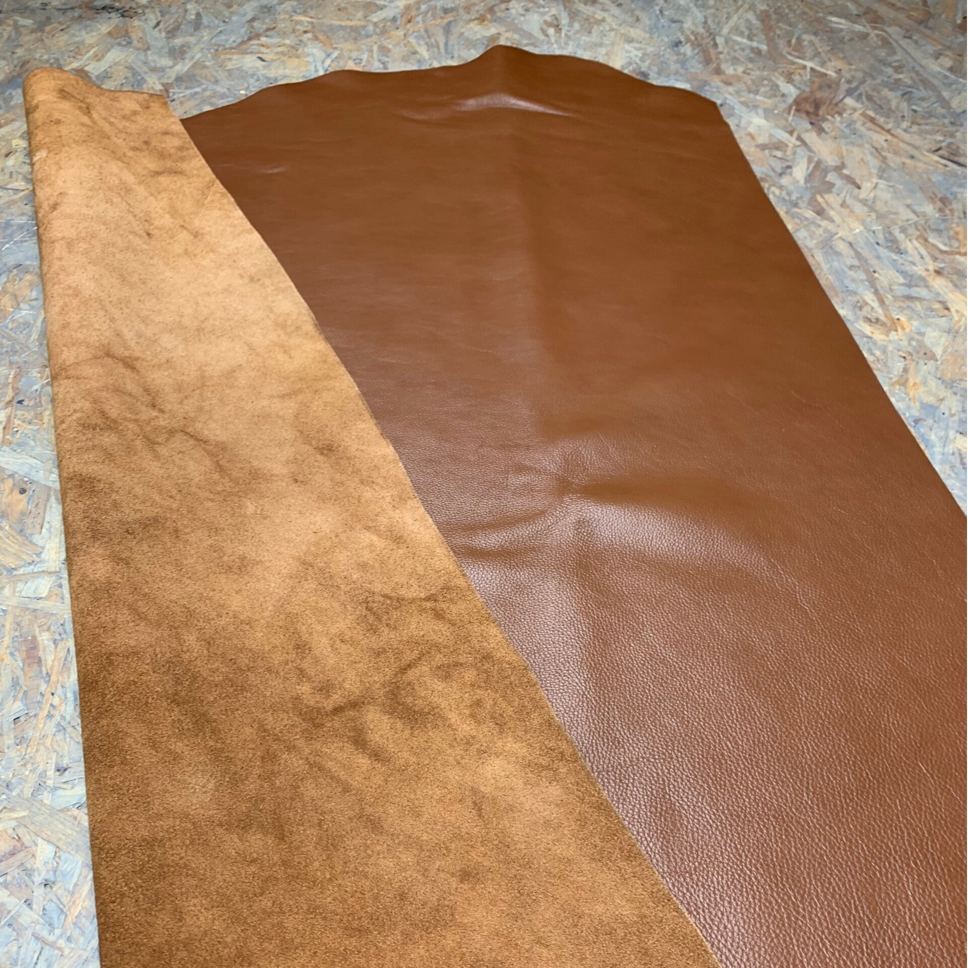 Een prachtige soepele kneedbare donker cognac leren lap