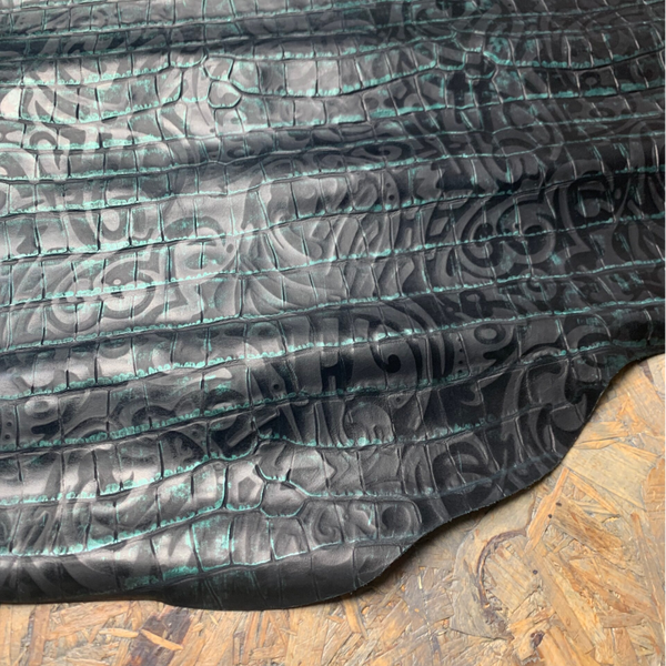 Twee soepele zwart met groene en zwart met paarse croc leren lappen