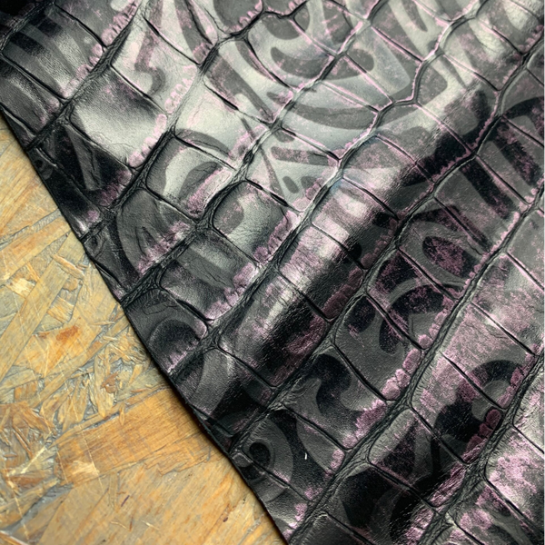 Een soepele zwart met paarse croc leren lap