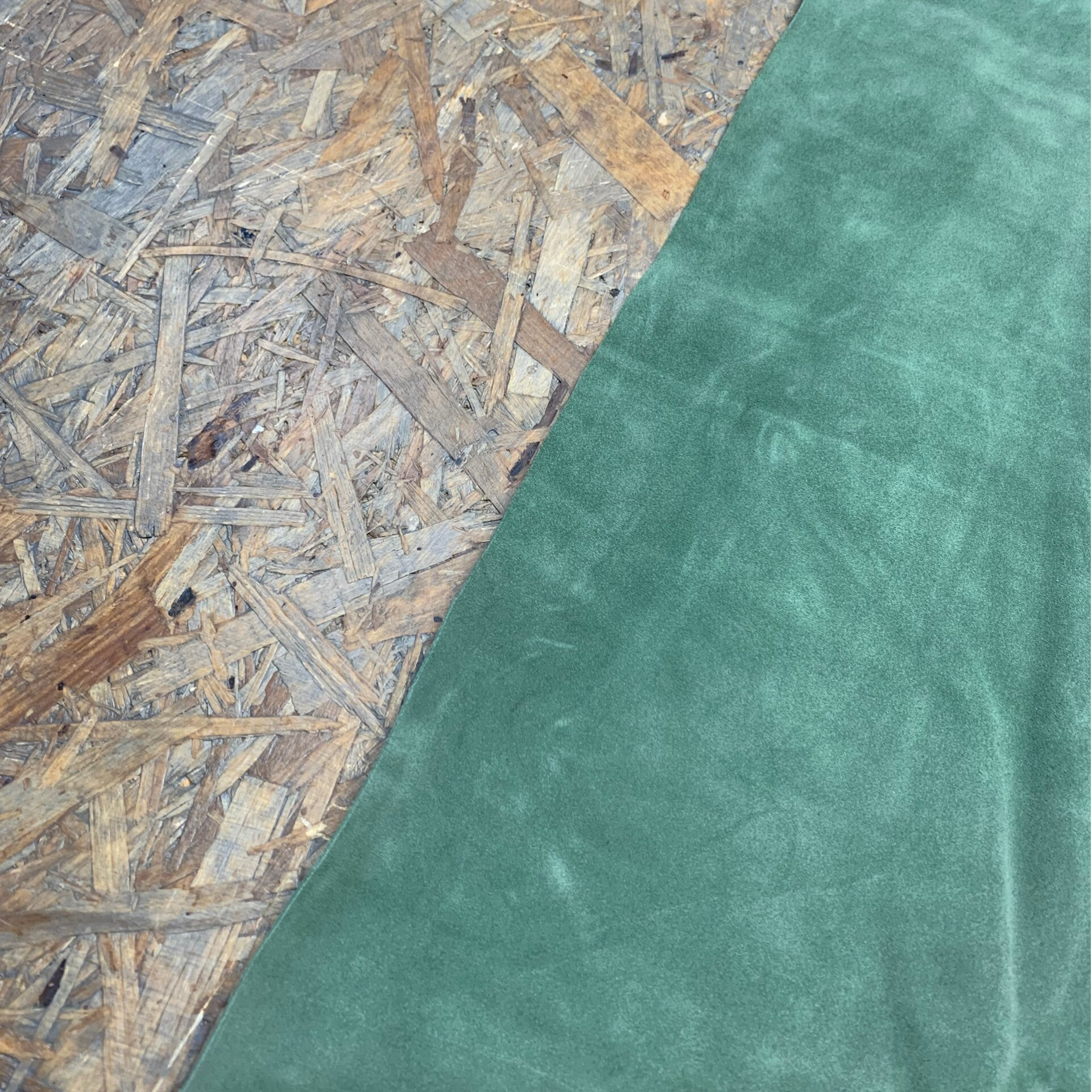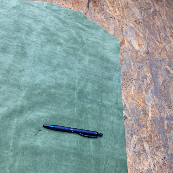 Een soepel en zacht suede groene leren lap met prachtige achterkant