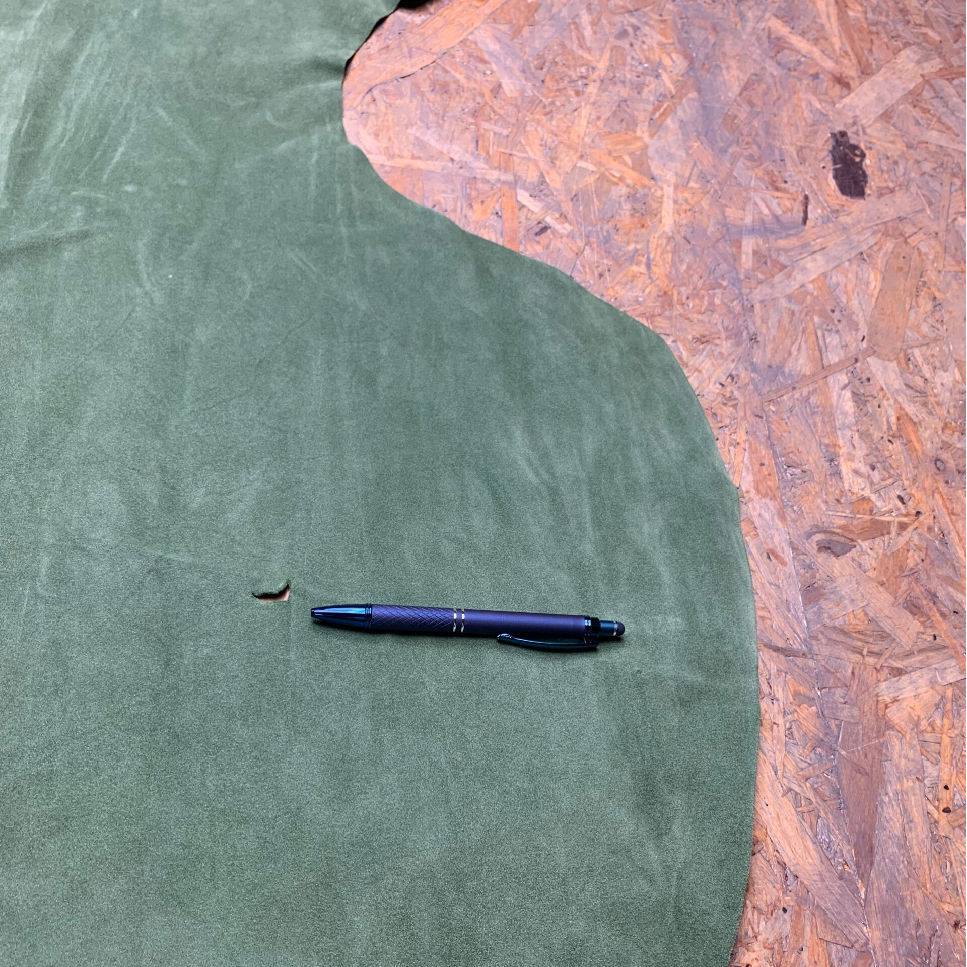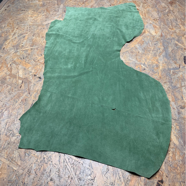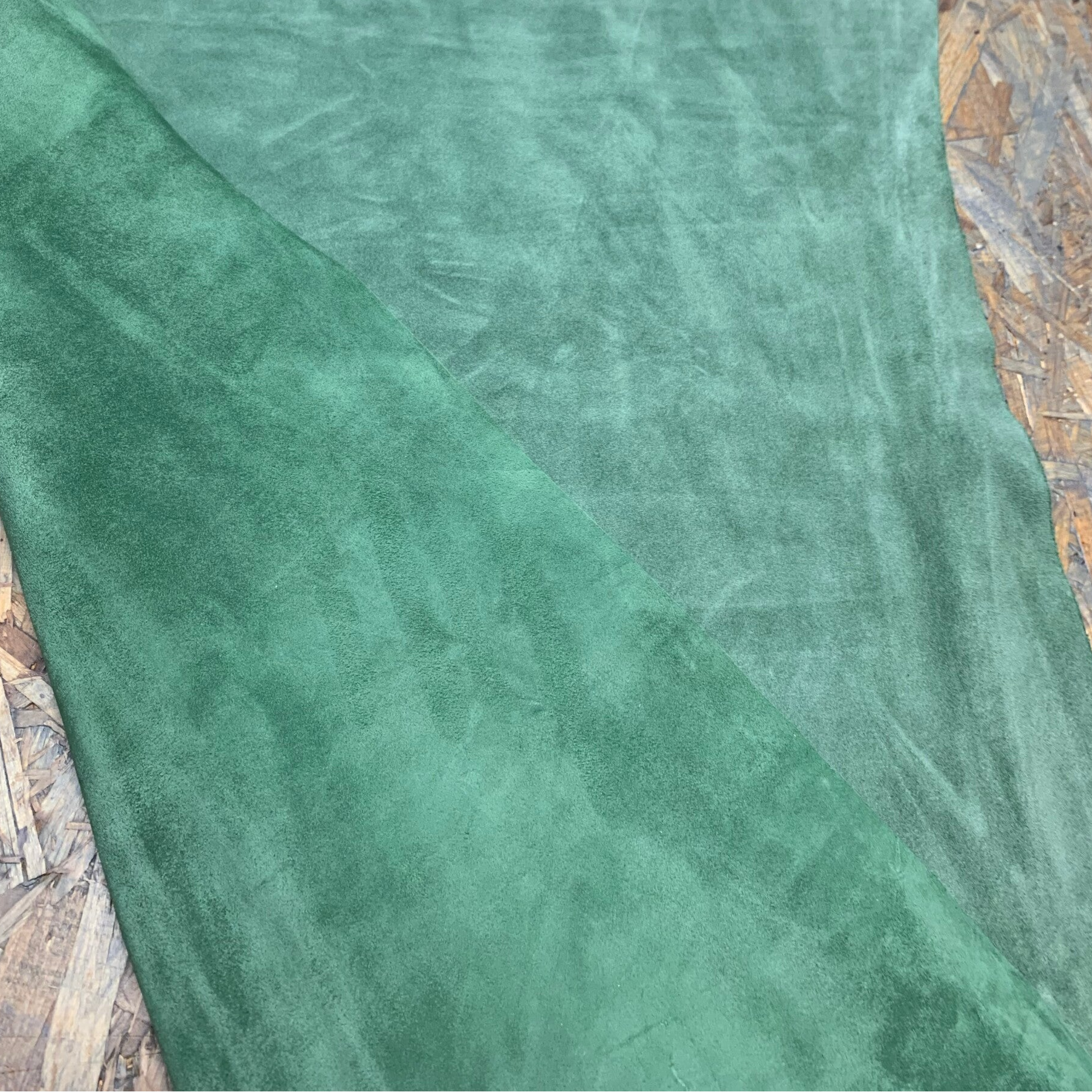Een soepel en zacht suede groene leren lap met prachtige achterkant