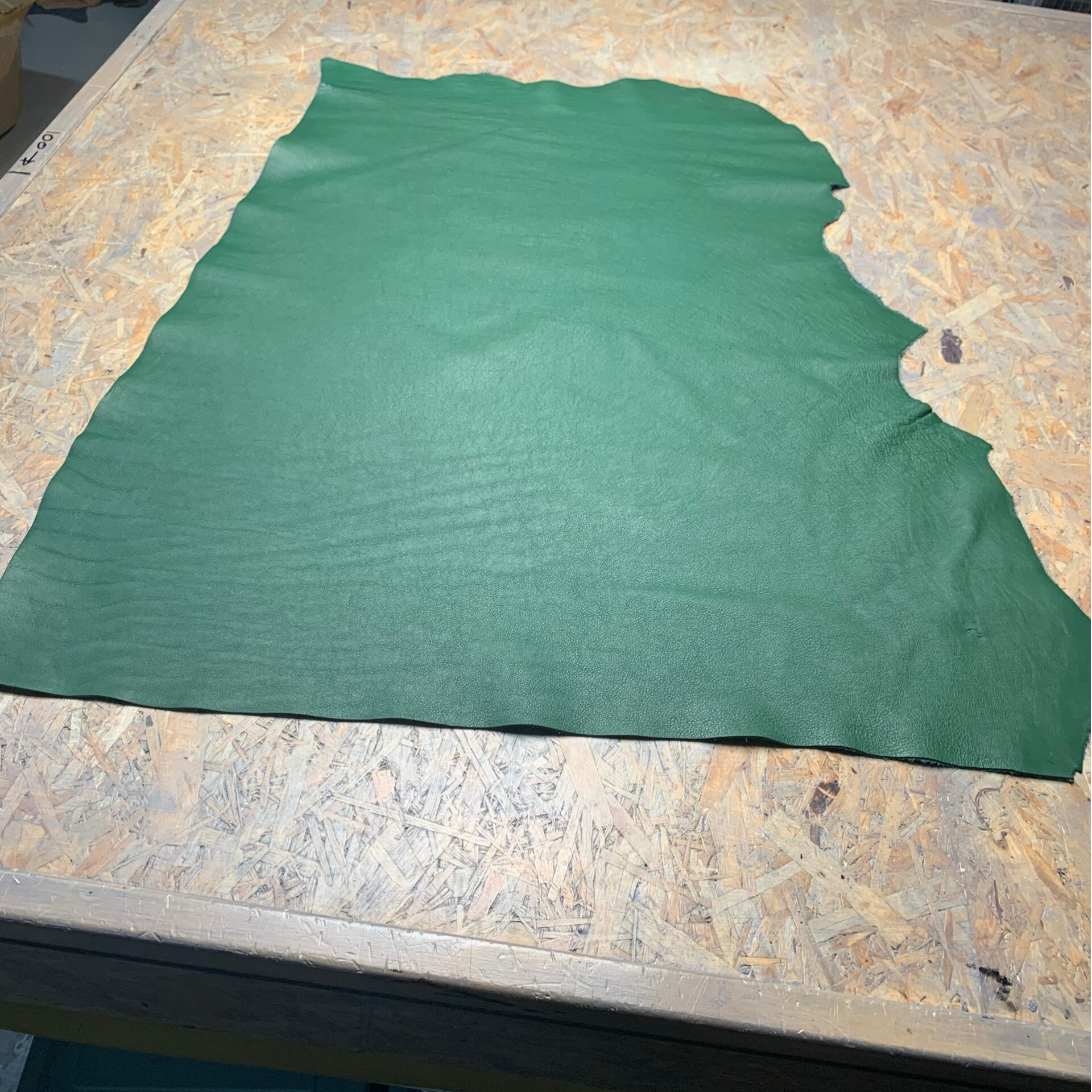Prachtige stevige doch soepele mosgroene leren lap met mooie achterkant