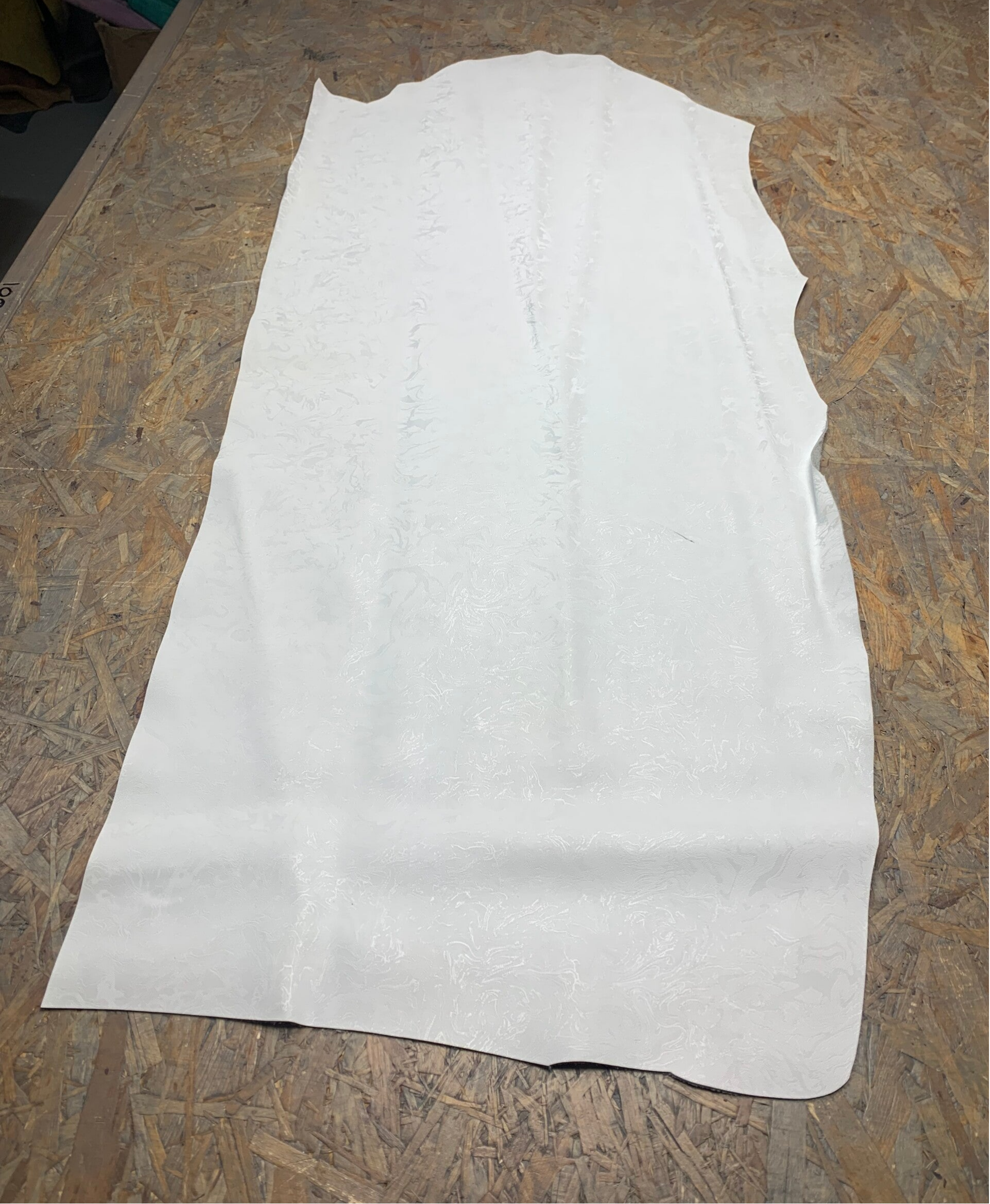 Een prachtige stevige doch soepele witte leren lap met sierlijk patroon