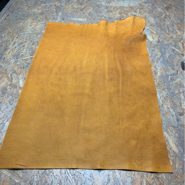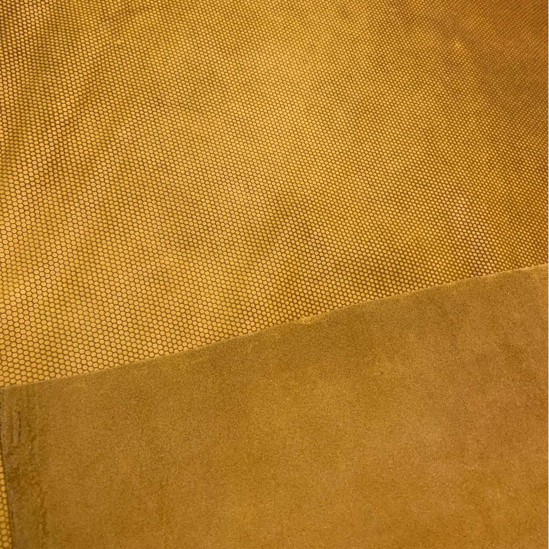 Een stevige, stugge vintage okergele leren lap met honingraat
