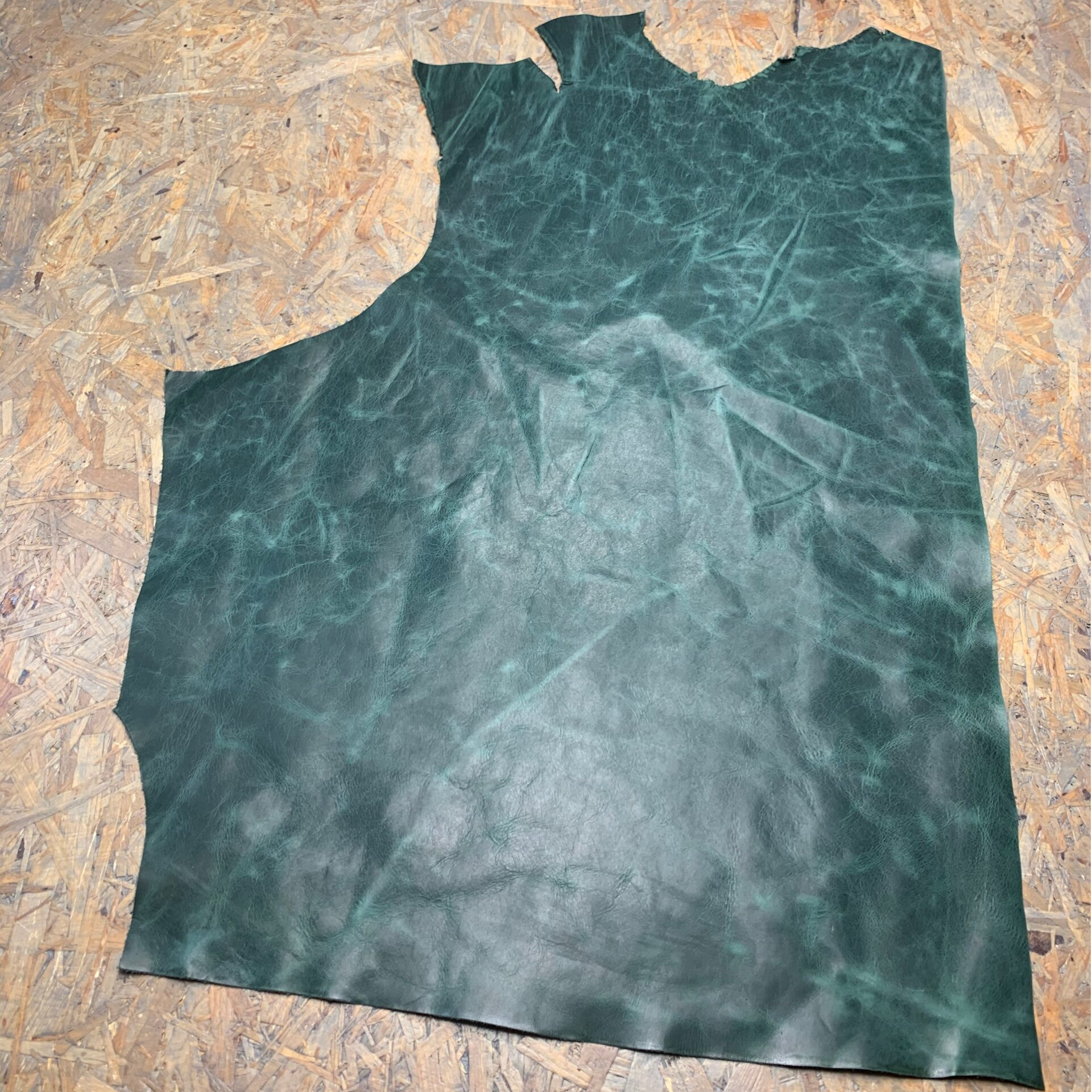 Een stugge gladde groene gemeleerde leren lap met prachtige achterkant