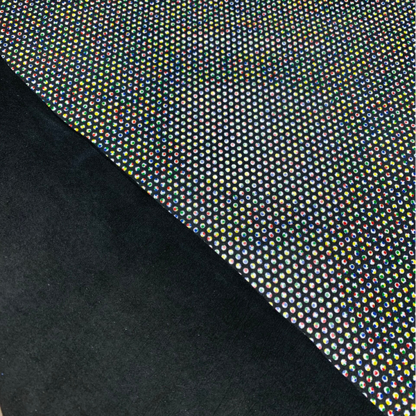 Een stevige doch soepele, vrolijke confetti patroon leren lap met zwarte achterkant