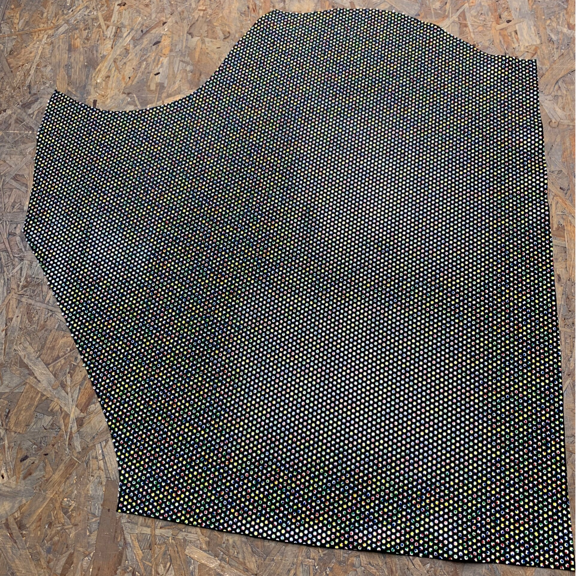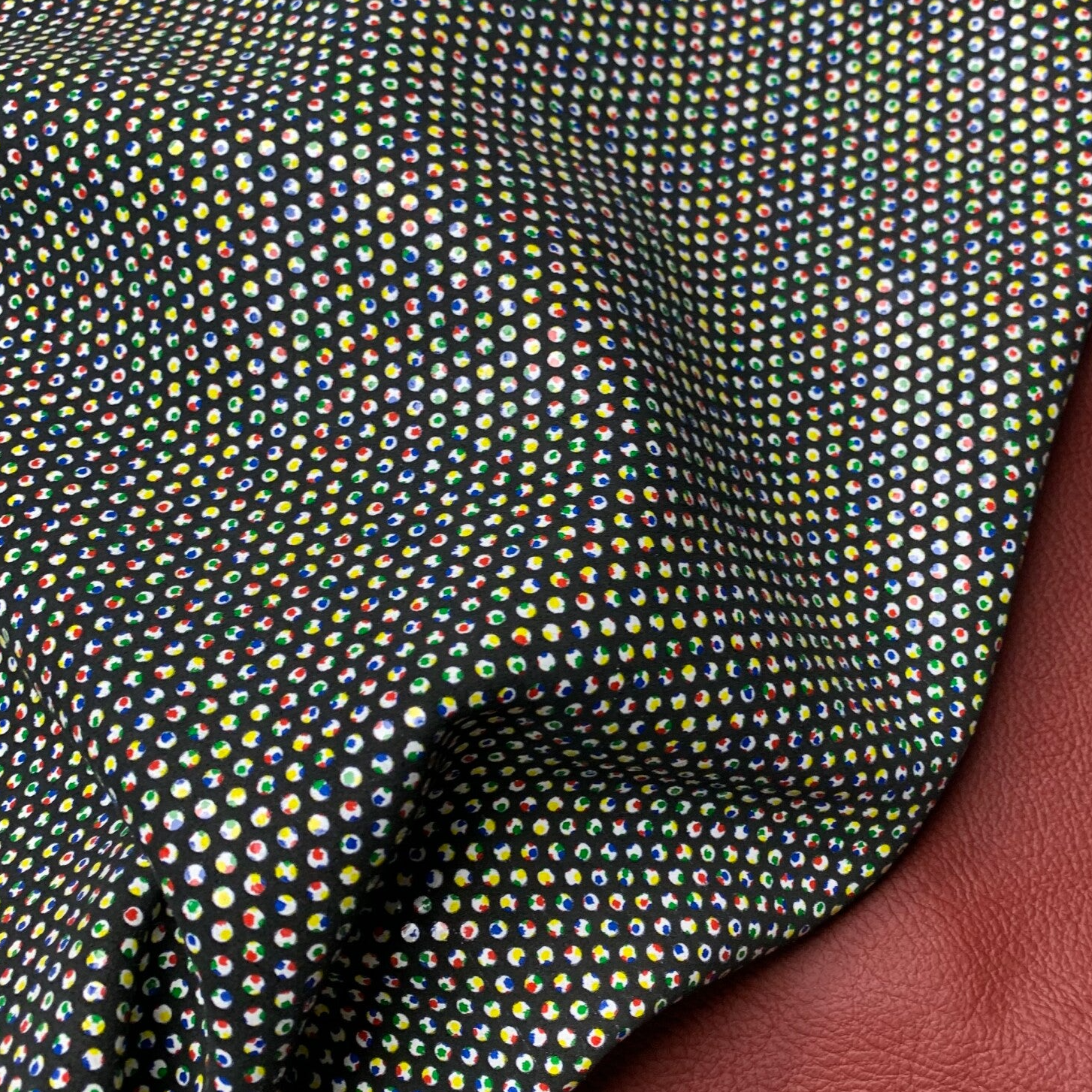 Een stevige doch soepele, vrolijke confetti patroon leren lap met zwarte achterkant