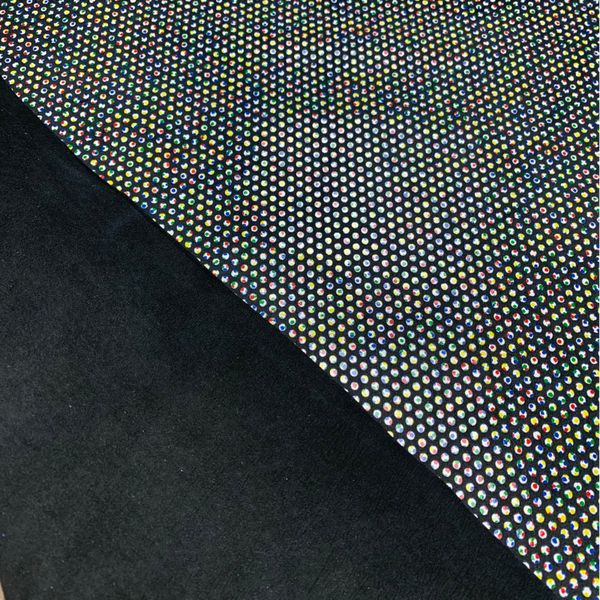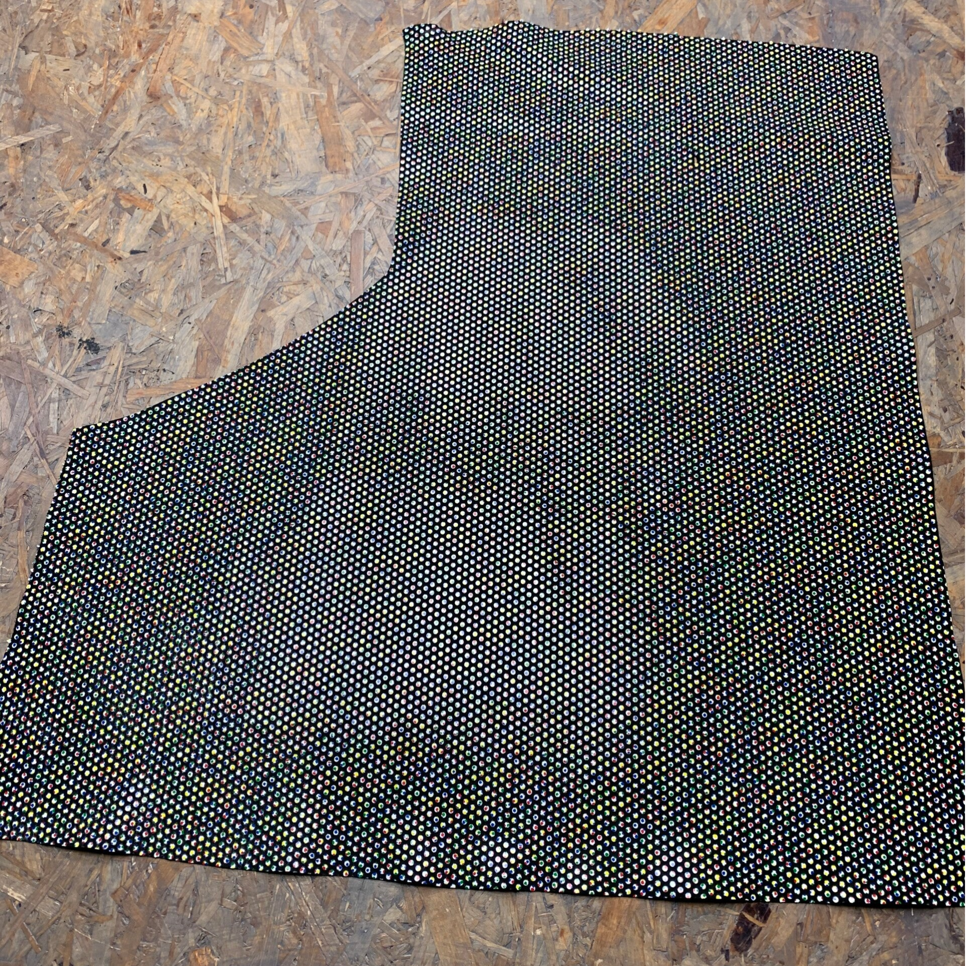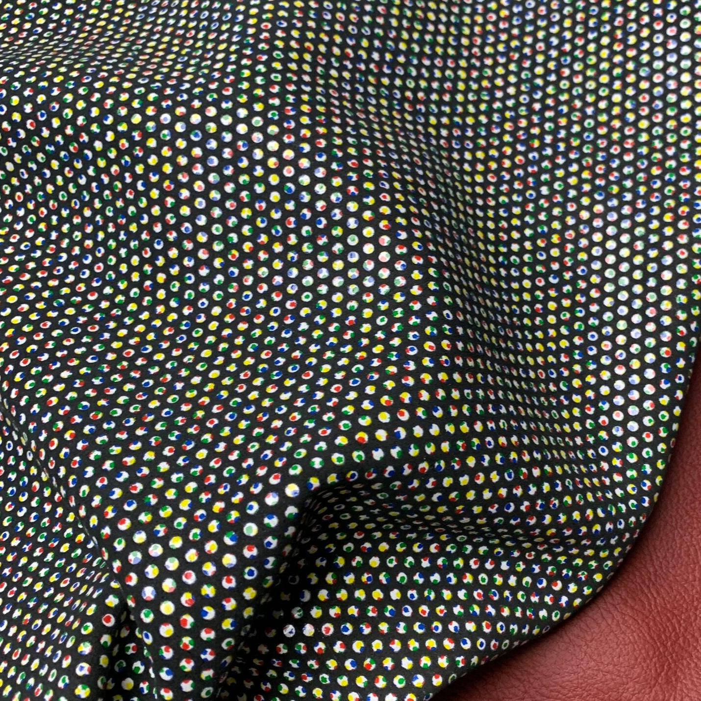 Een stevige doch soepele, vrolijke confetti patroon leren lap met zwarte achterkant
