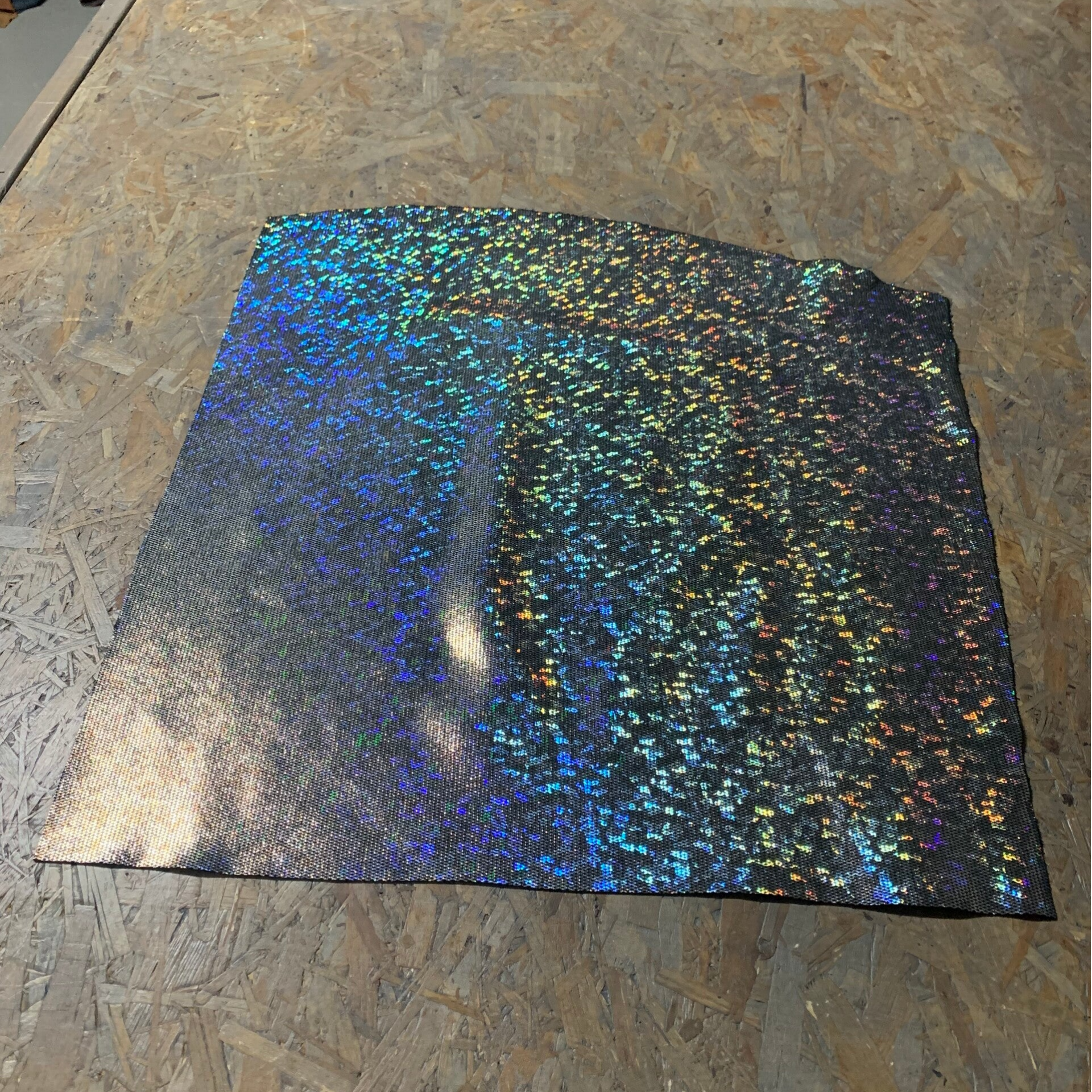 Een stevige doch soepele, verrassende disco zilverkleurige leren lap, die er met en zonder licht anders uitziet