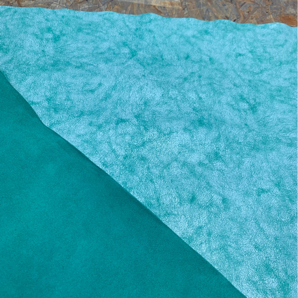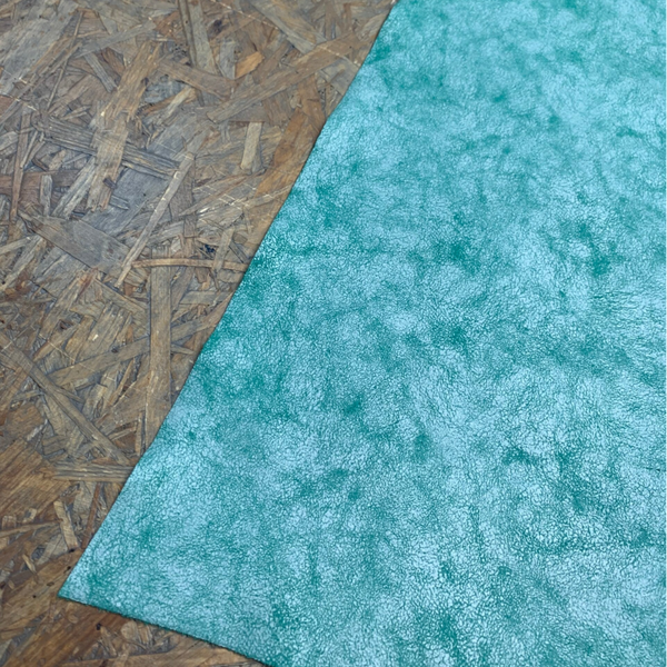 Een stevige doch soepele groen met wit crackle look leren lap, met mooie groene achterkant