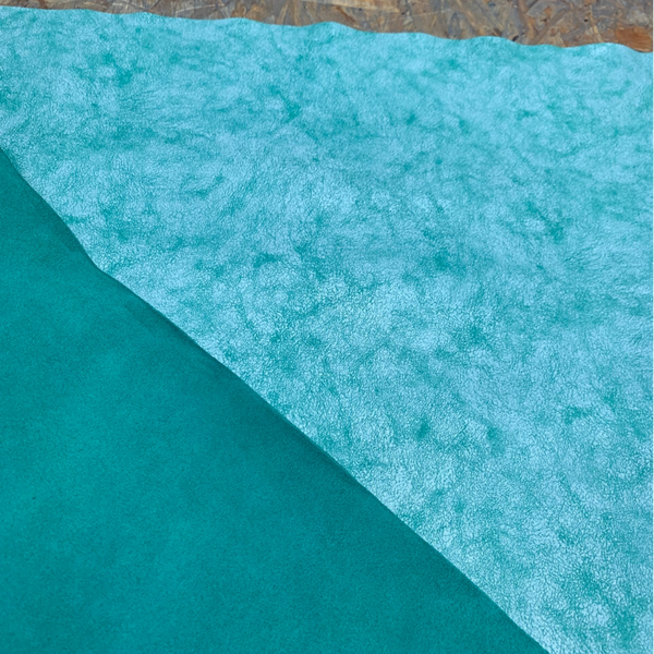 Een stevige doch soepele groen met wit crackle look leren lap, met mooie groene achterkant
