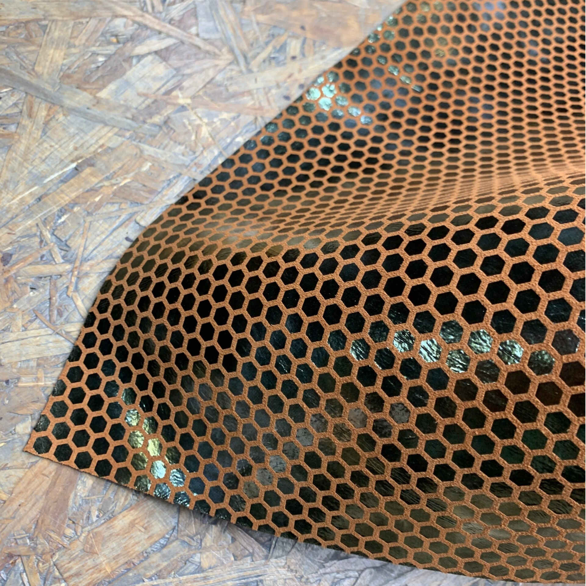 Een feestelijke goud met cognac honingraat leren lap met prachtige achterkant