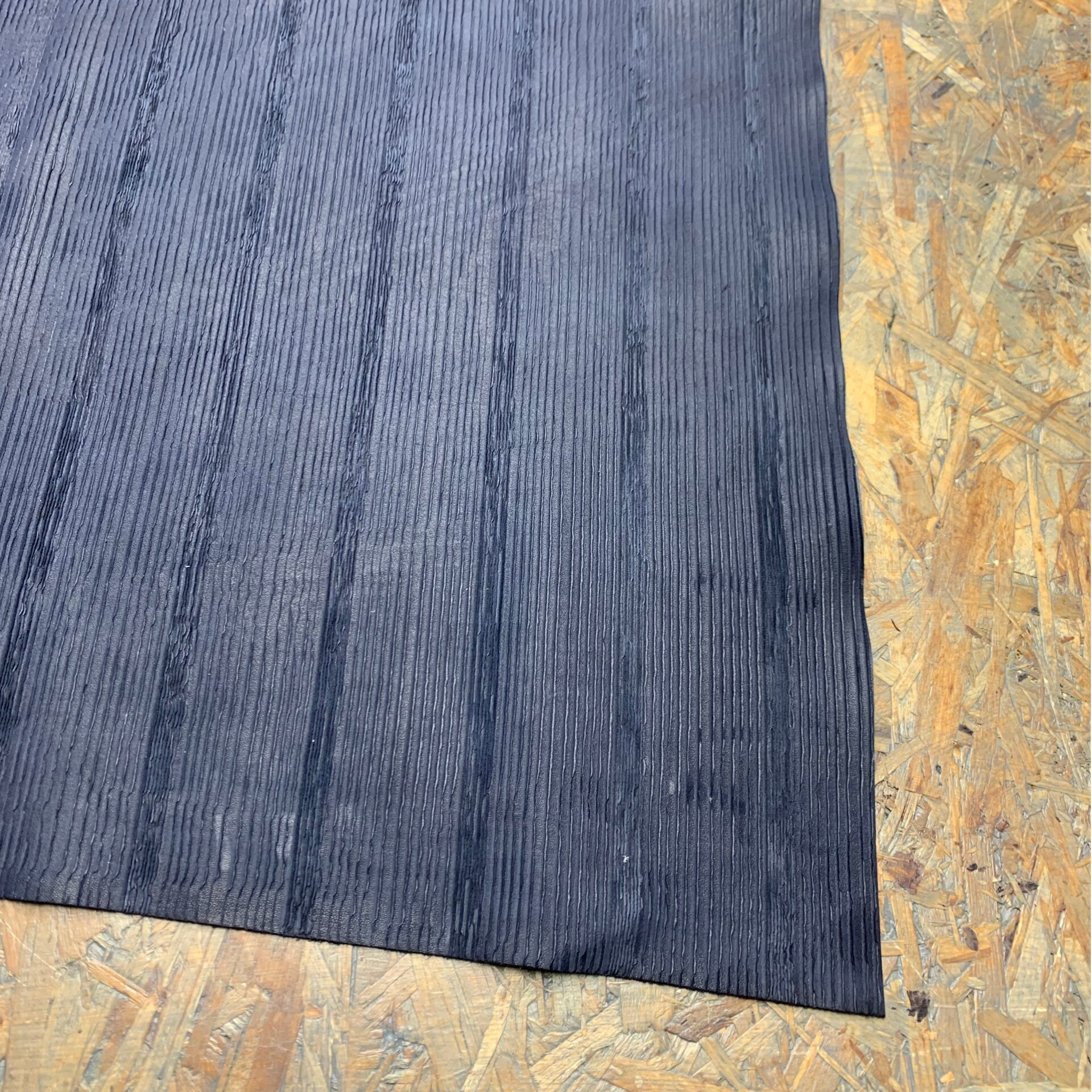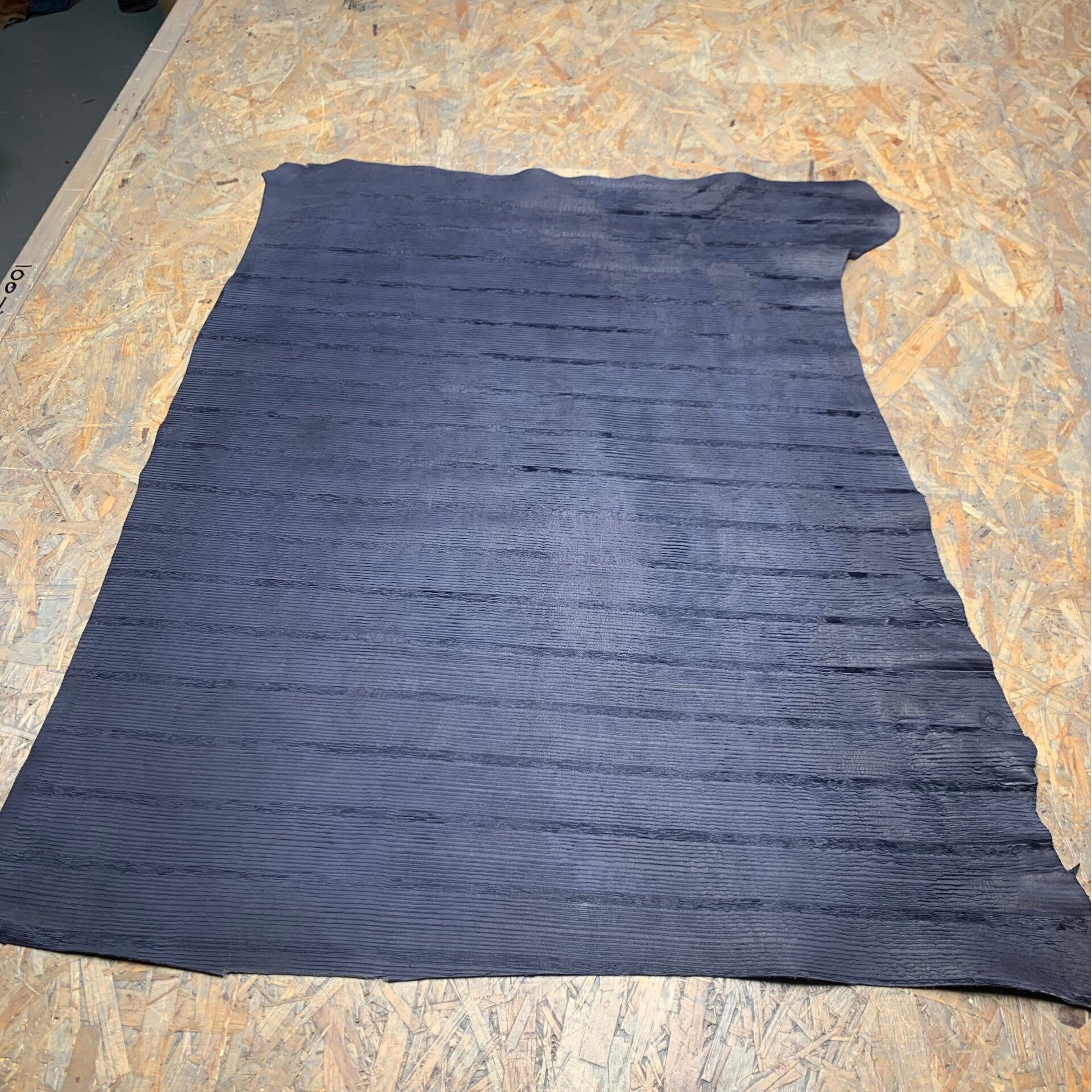 Een donkerblauw streepjes patroon leren lap