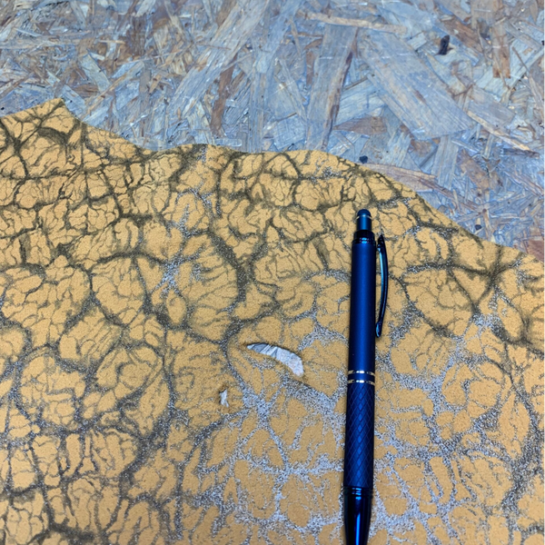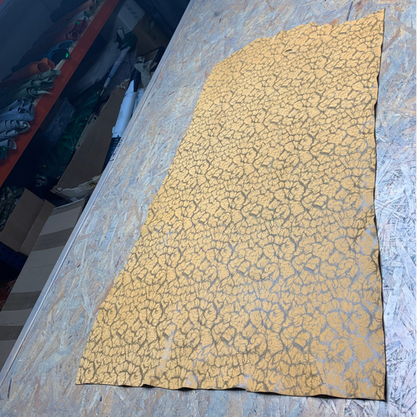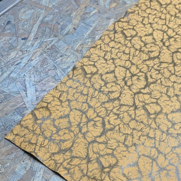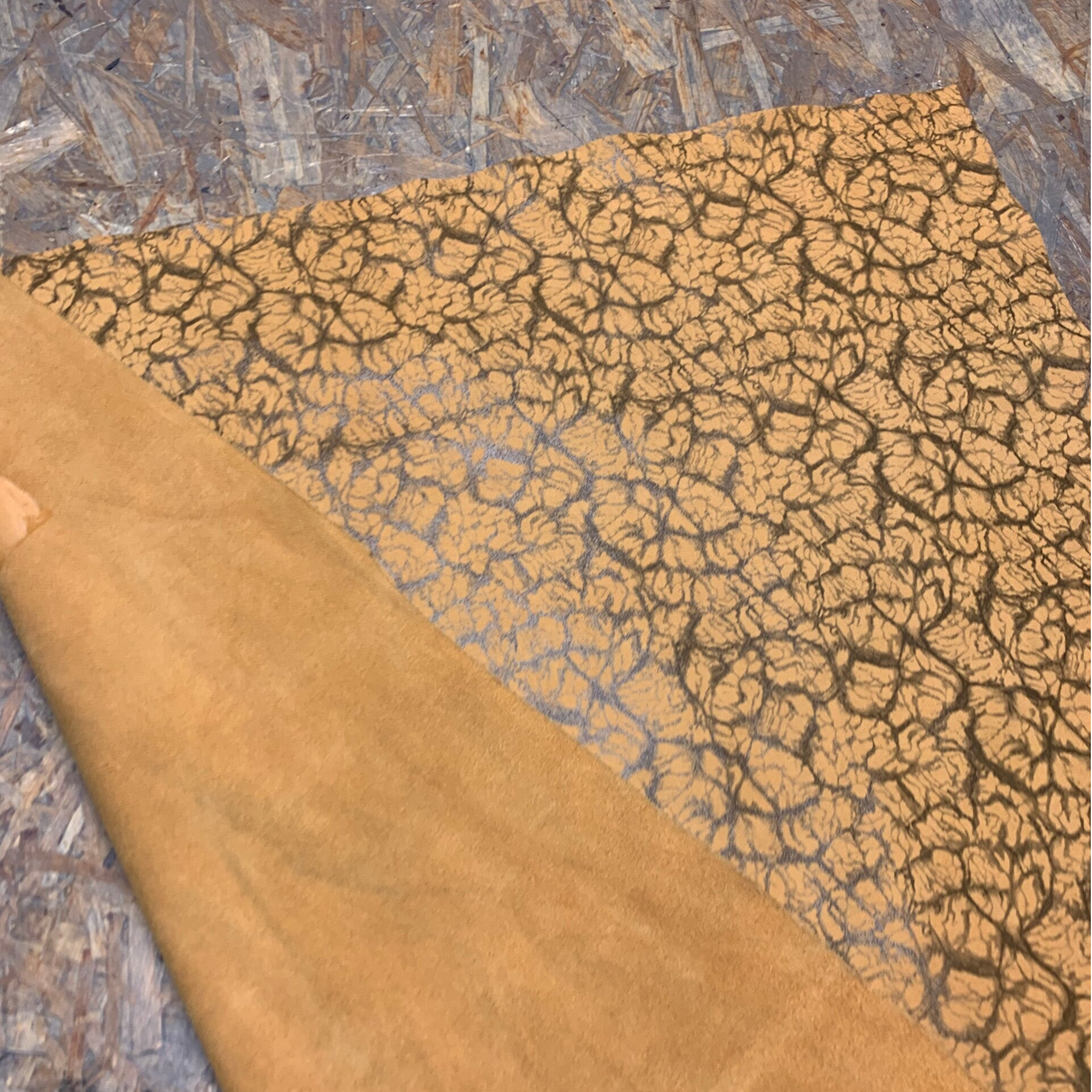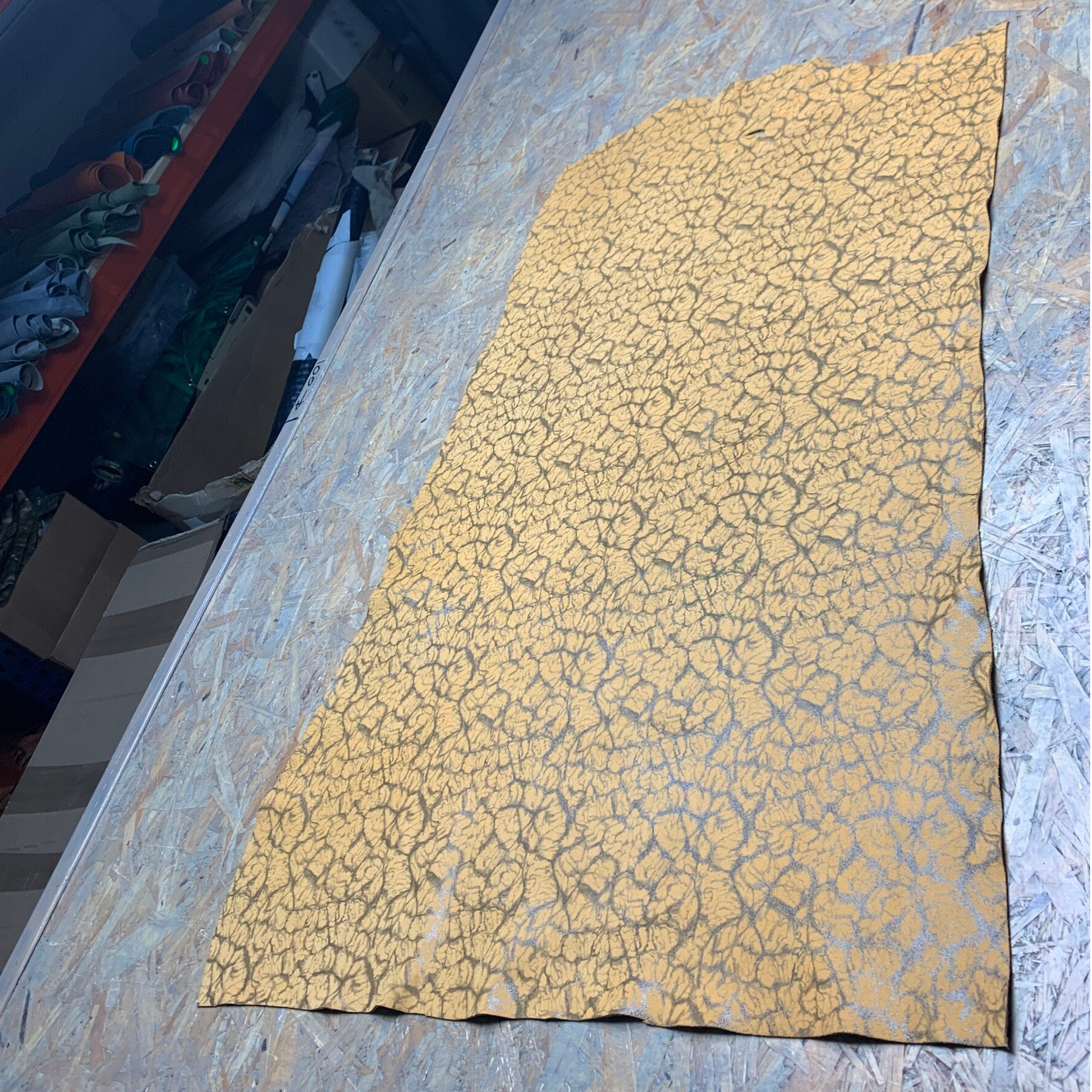 Een prachtige stevige doch soepele okergele leren lap met bloemen, zelfs de achterkant is te gebruiken