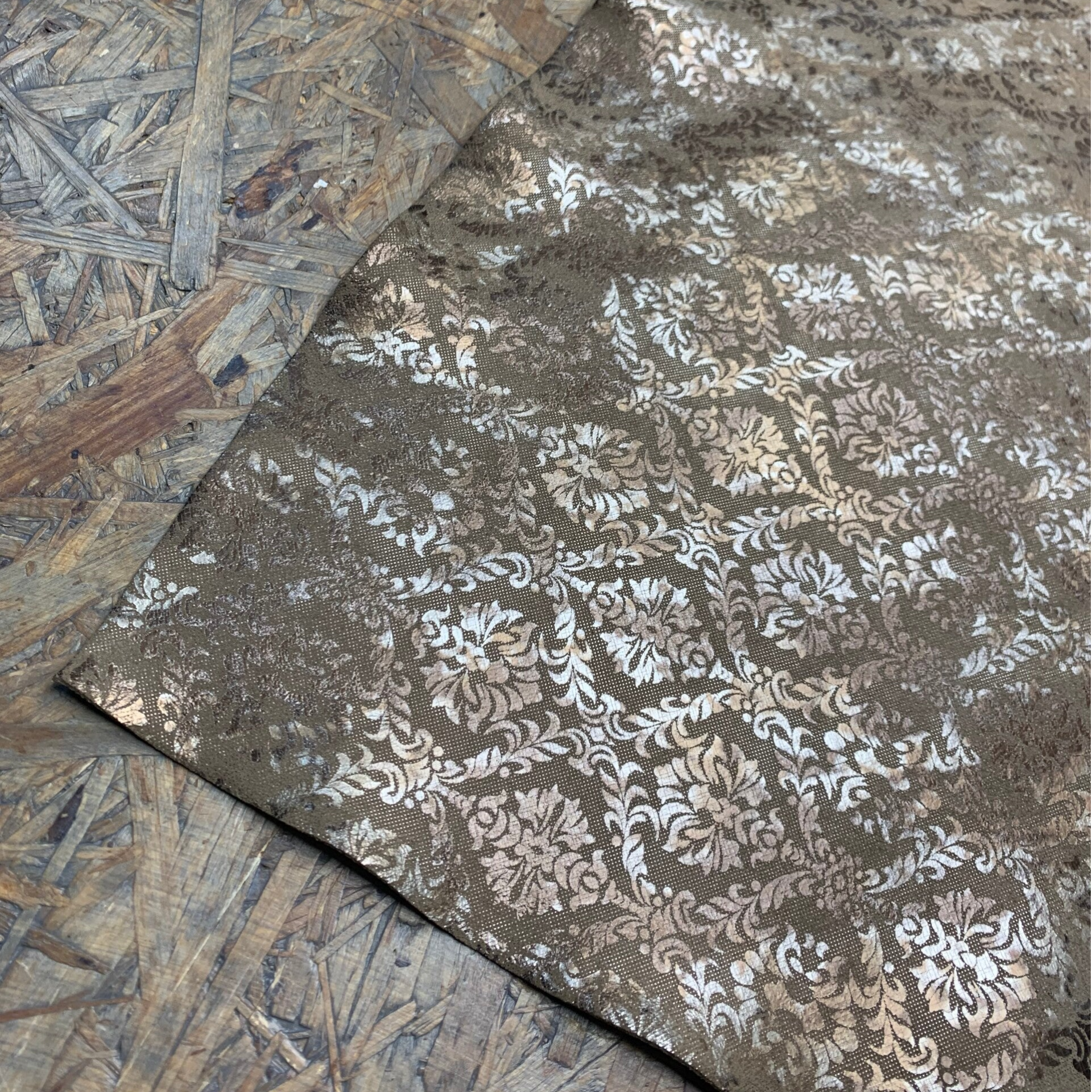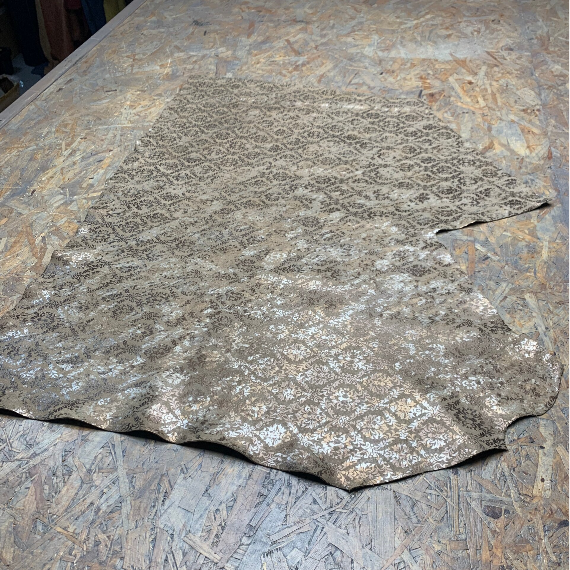 Een prachtige soepele goud creme leren lap met damast patroon, zelfs de achterkant is te gebruiken