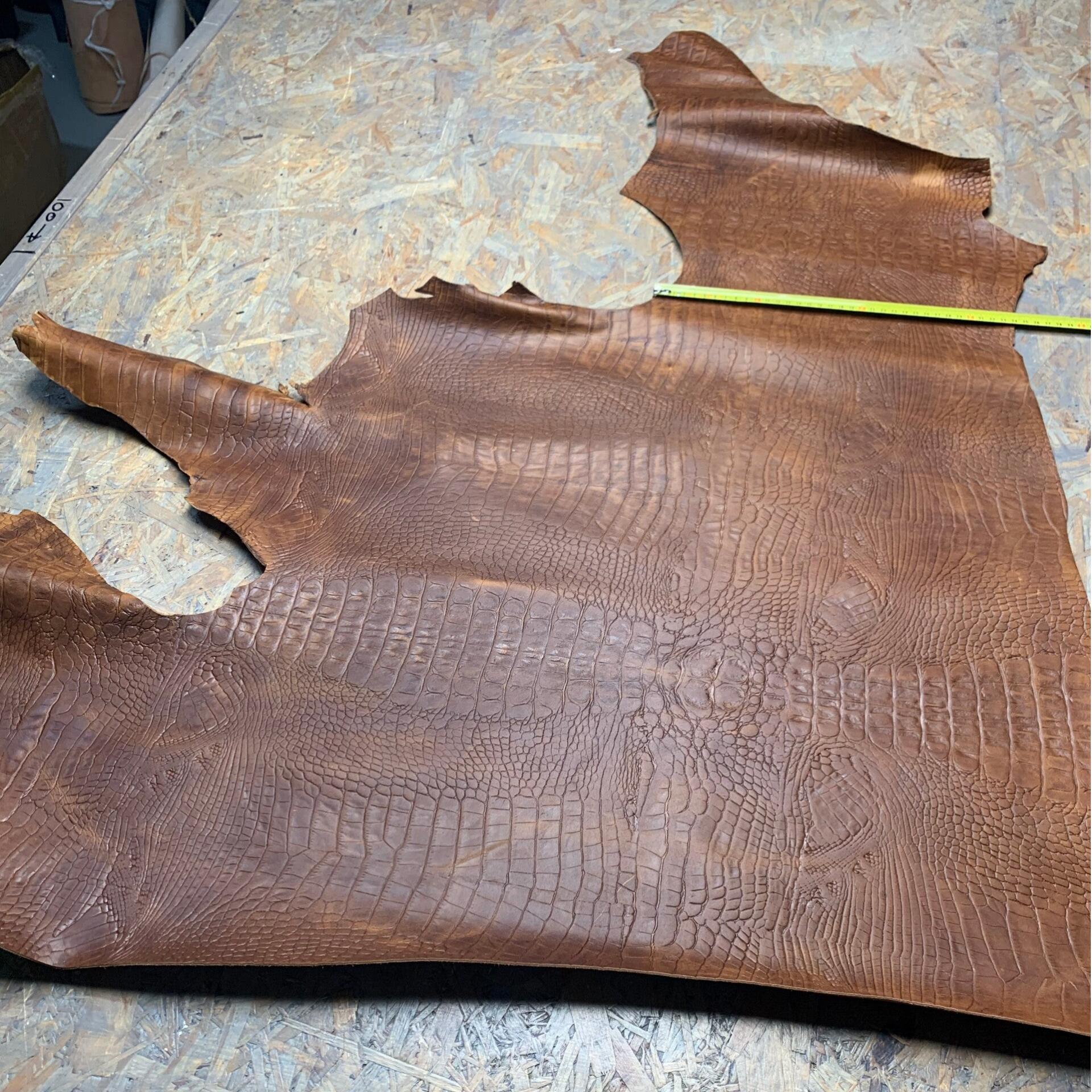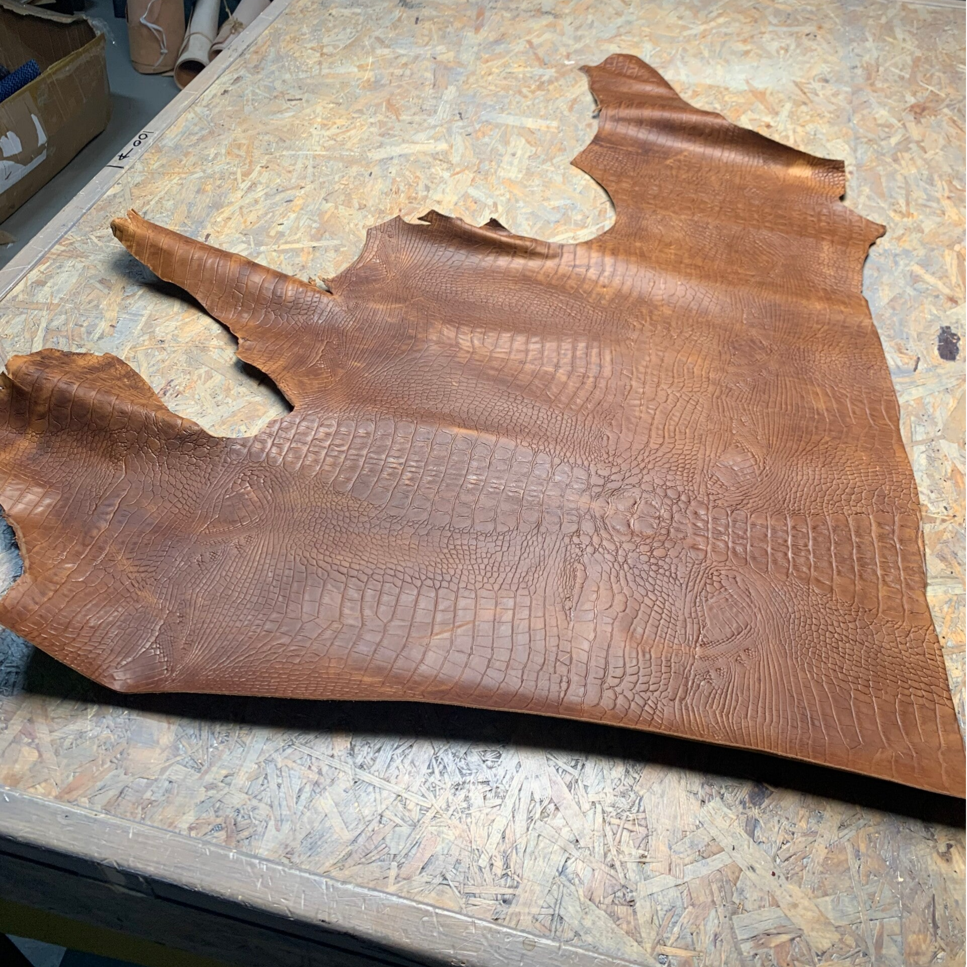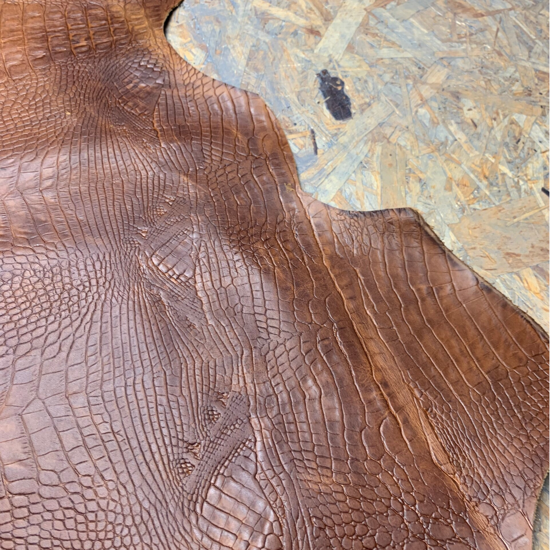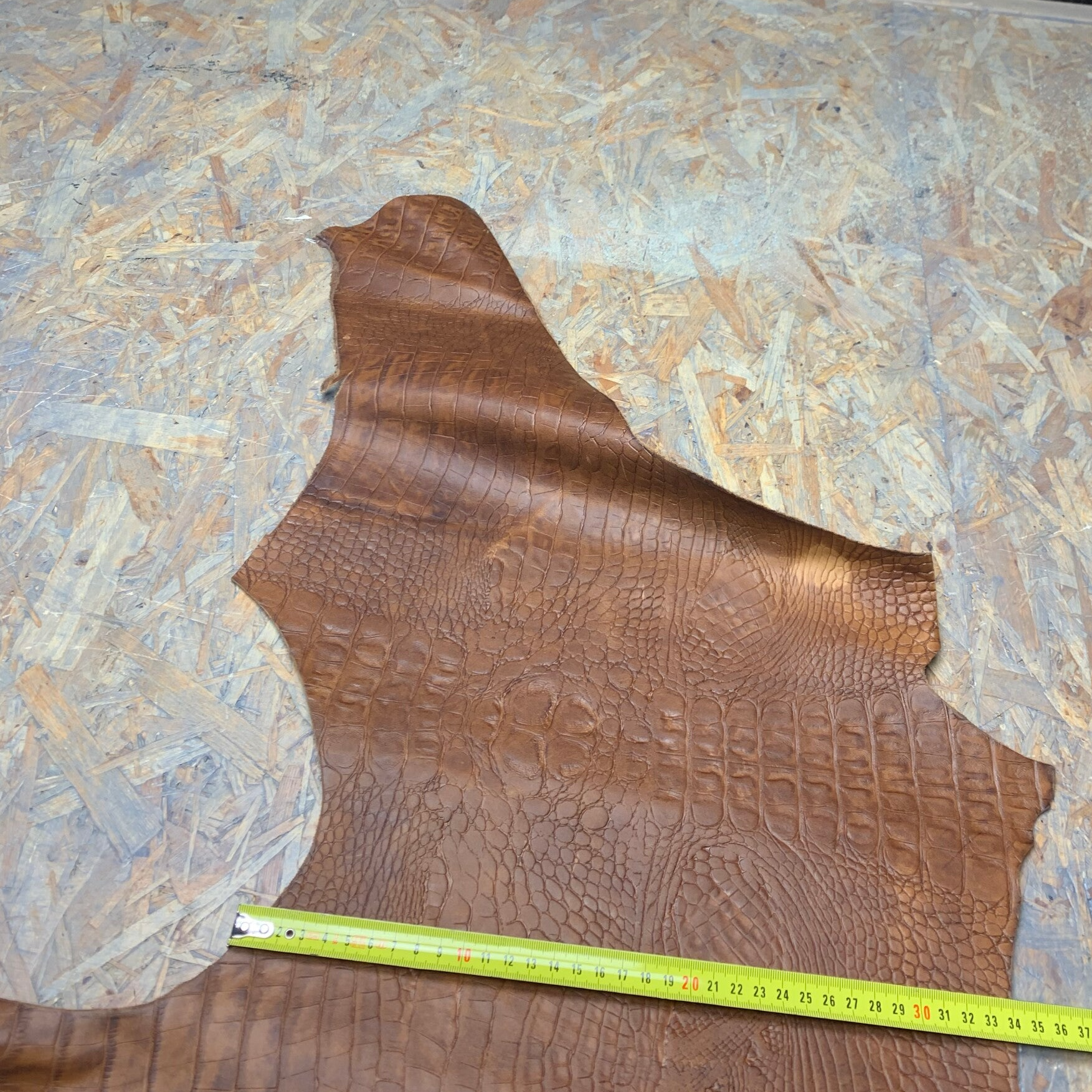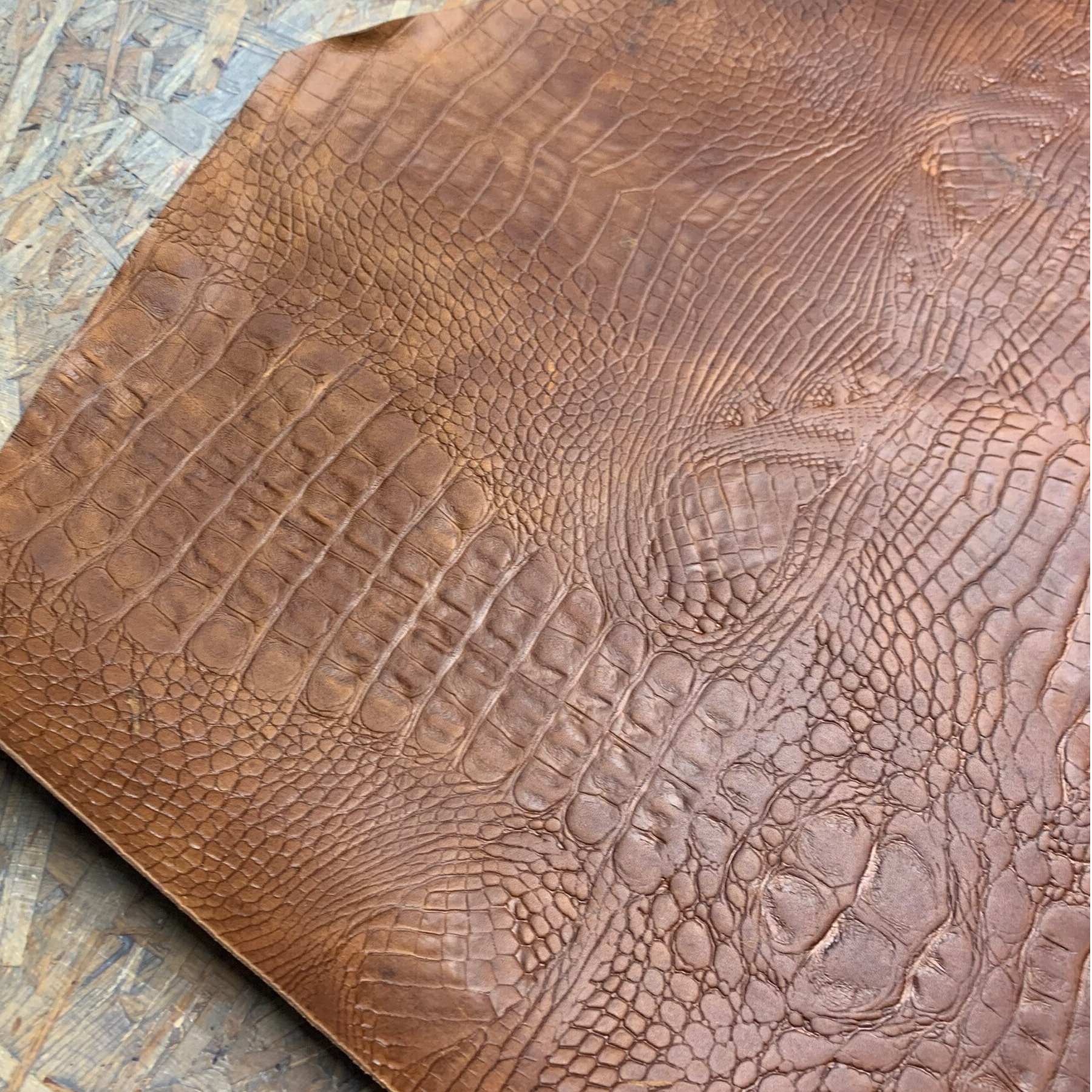 Een prachtige stevige ietswat standige cognackleurige croc leren lap