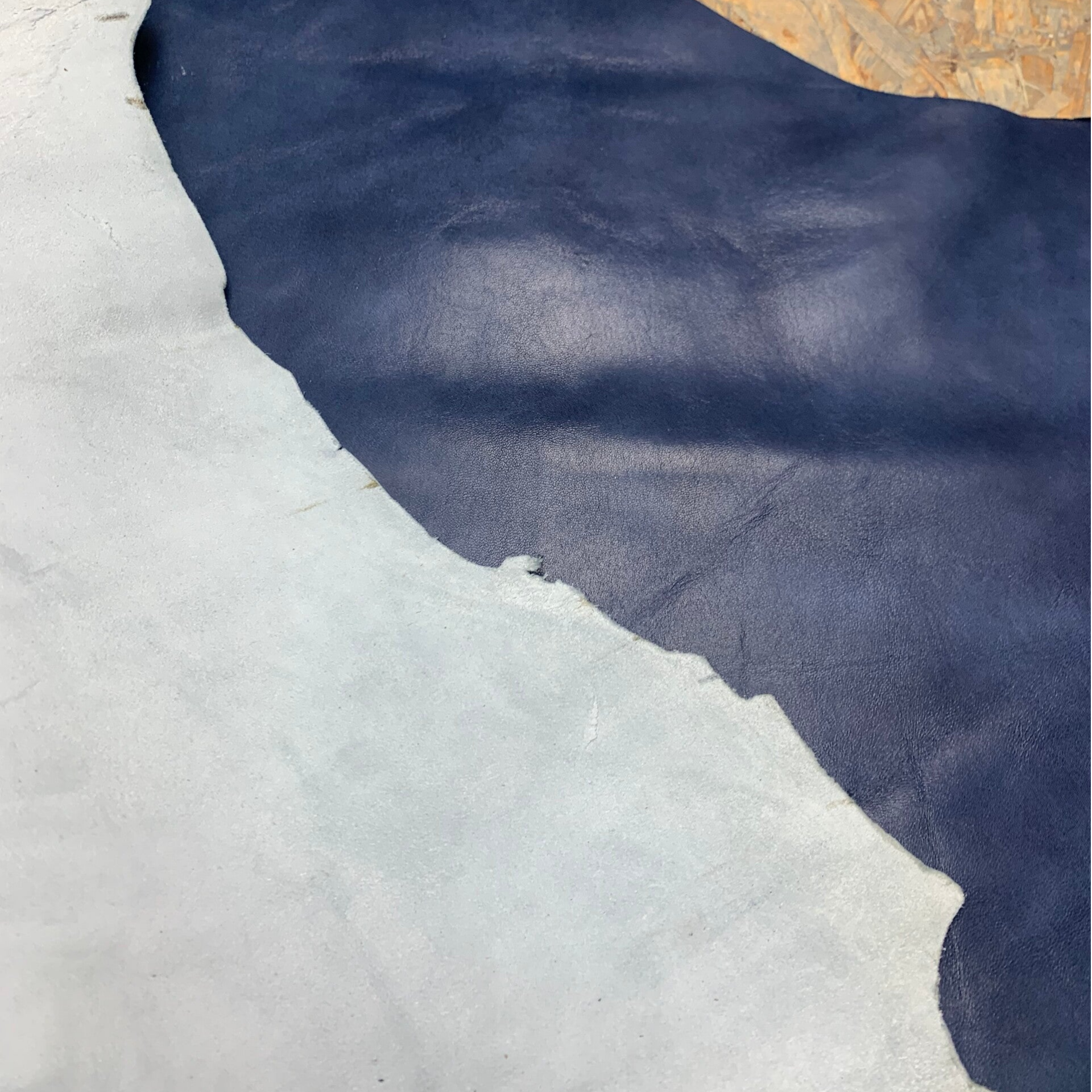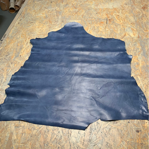 Een prachtige indigo blauwe leren lap