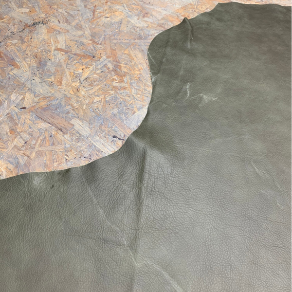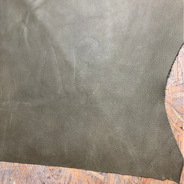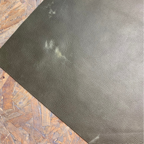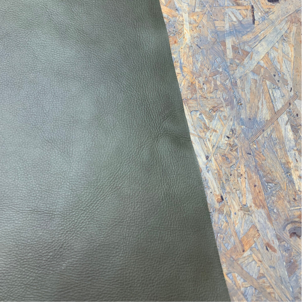 Een soepele doch stevige donker olijfgroene leren lap met mooie lichtgroene achterkant