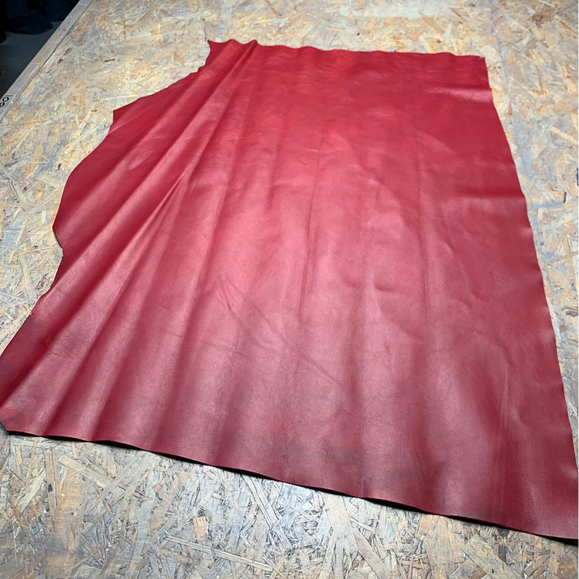 Een soepele doch stevige warm rode leren lap met mooie achterkant