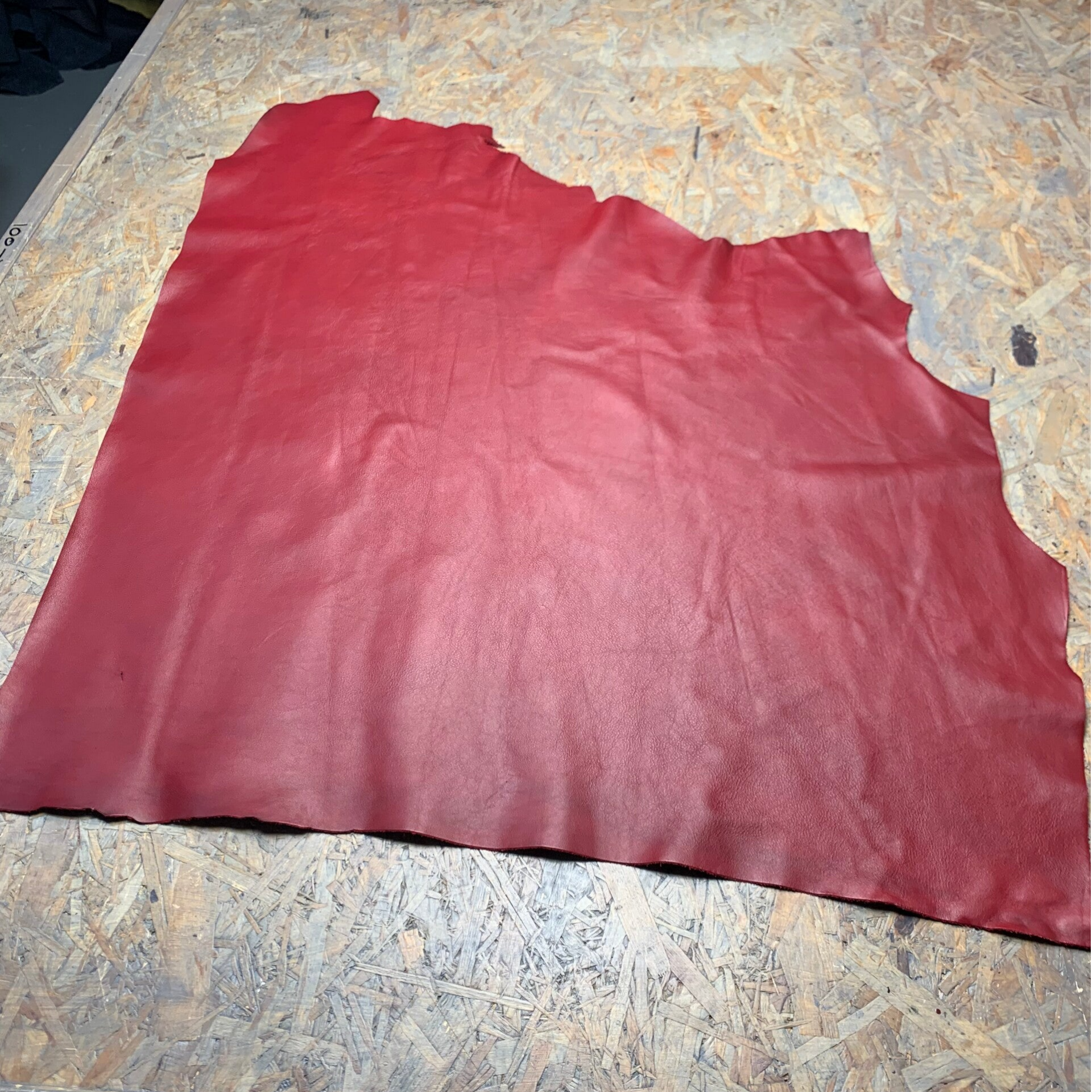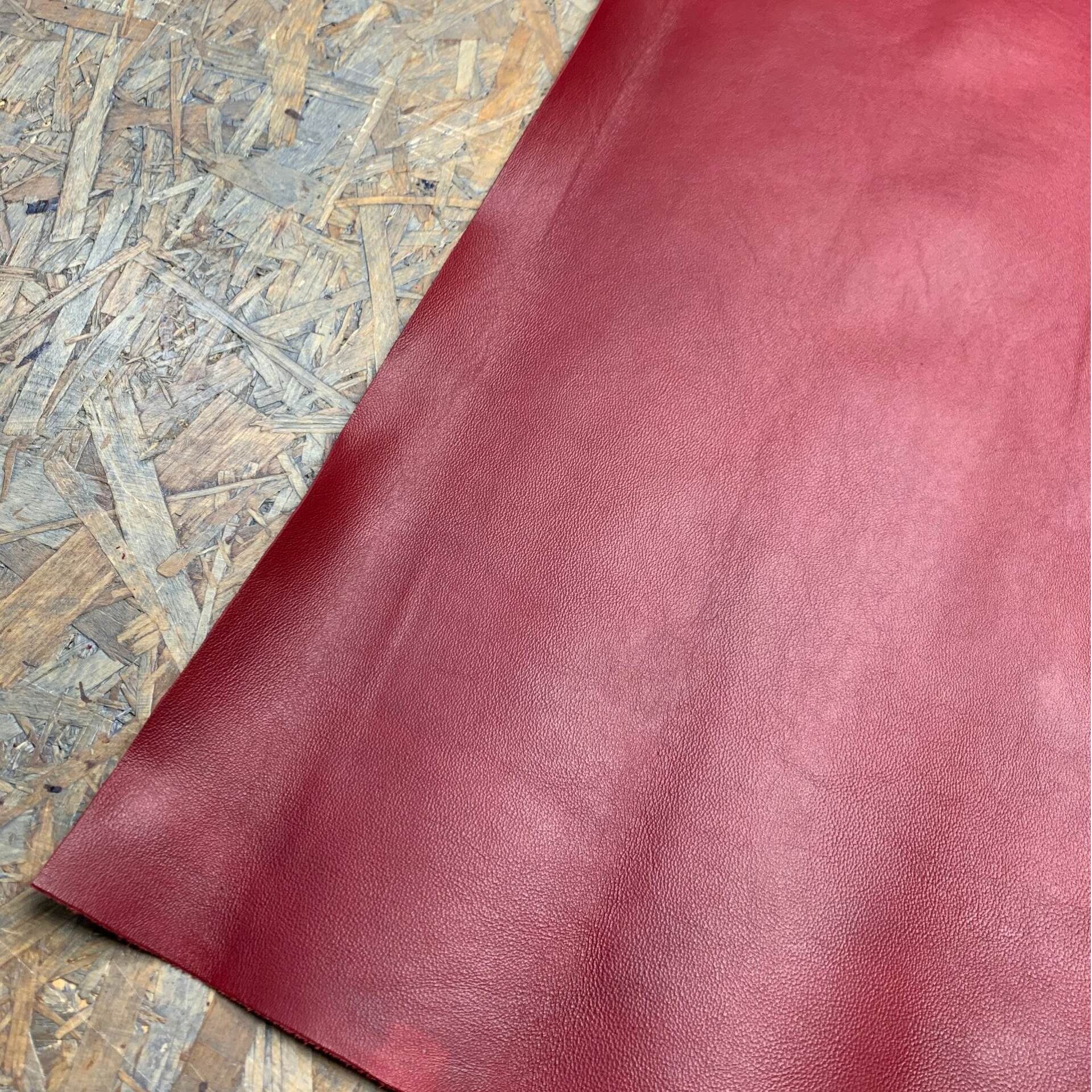 Een soepele doch stevige warm rode leren lap met mooie achterkant