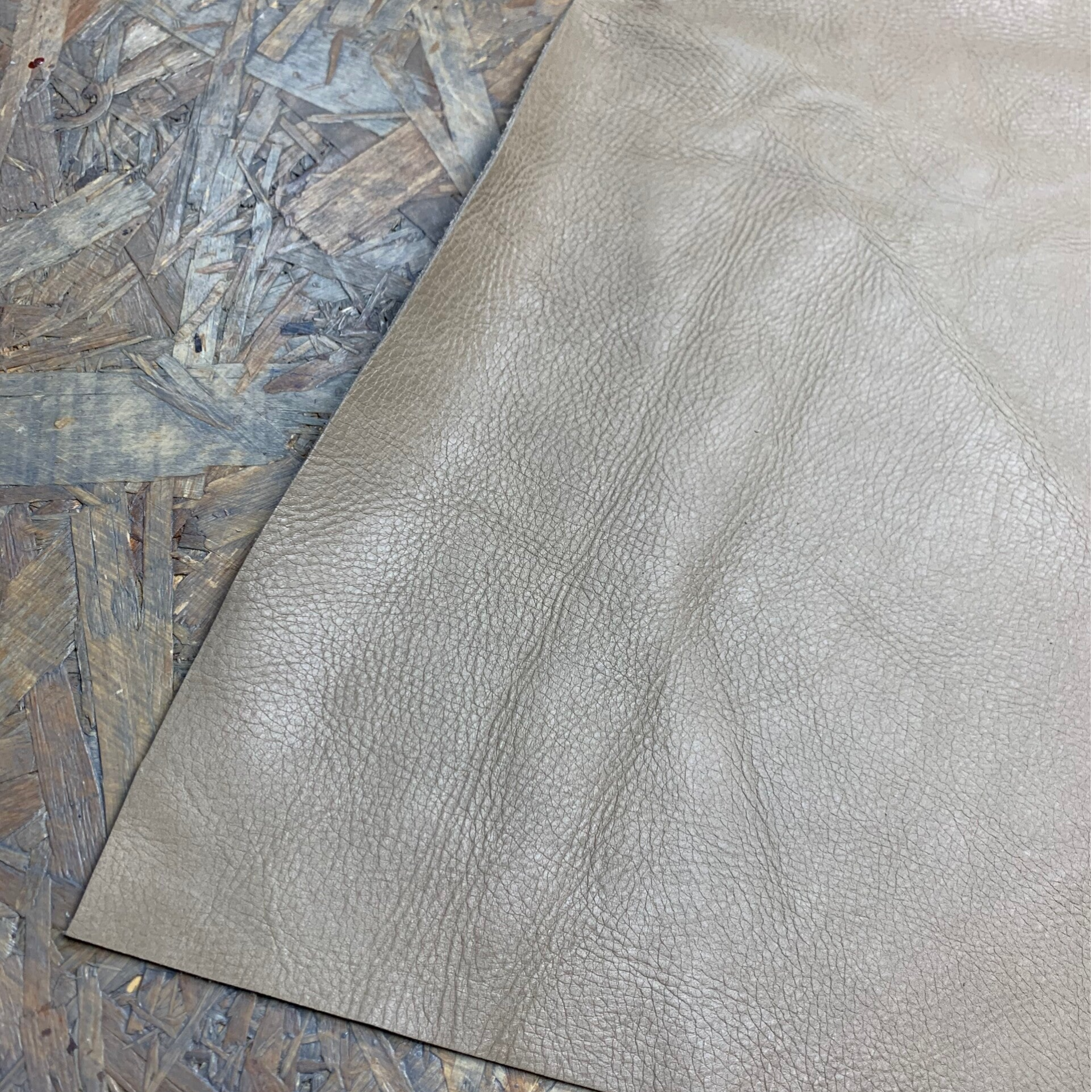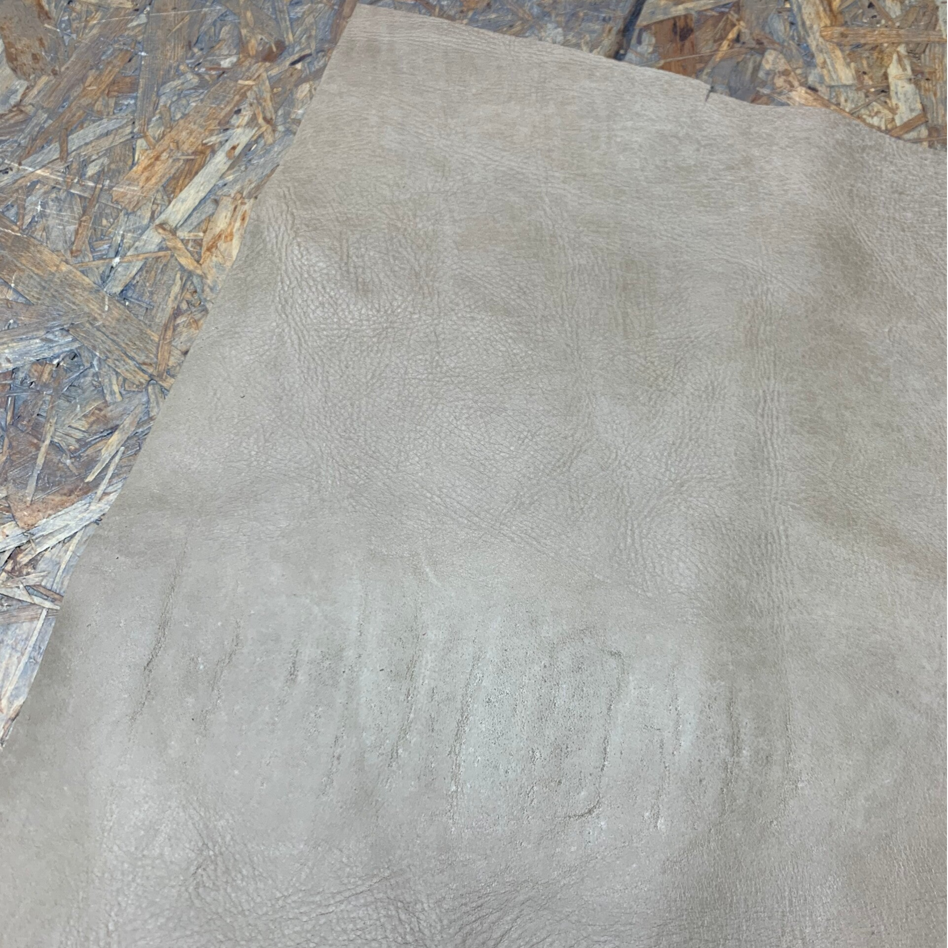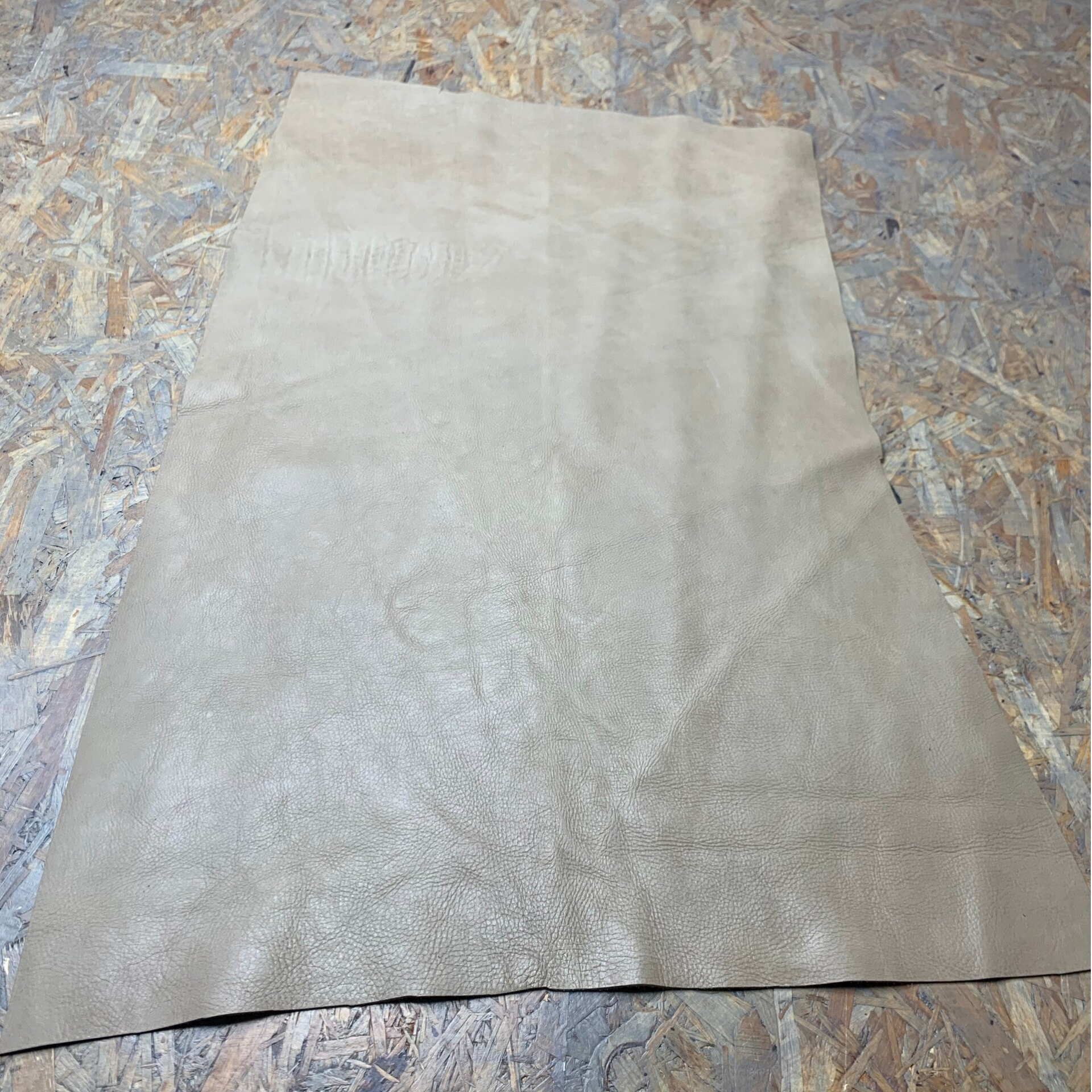 Een stevige beige leren lap met lichte achterkant