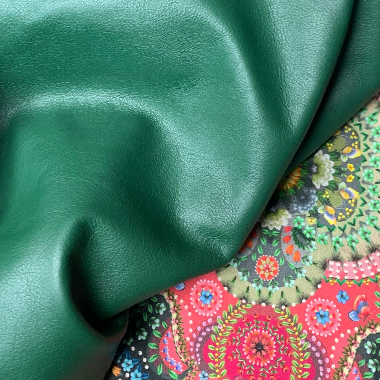 Hoogwaardige kwaliteit soepel en zacht kikkergroen rundleer, voelt als prachtig kalfsleer, met mooie achterkant