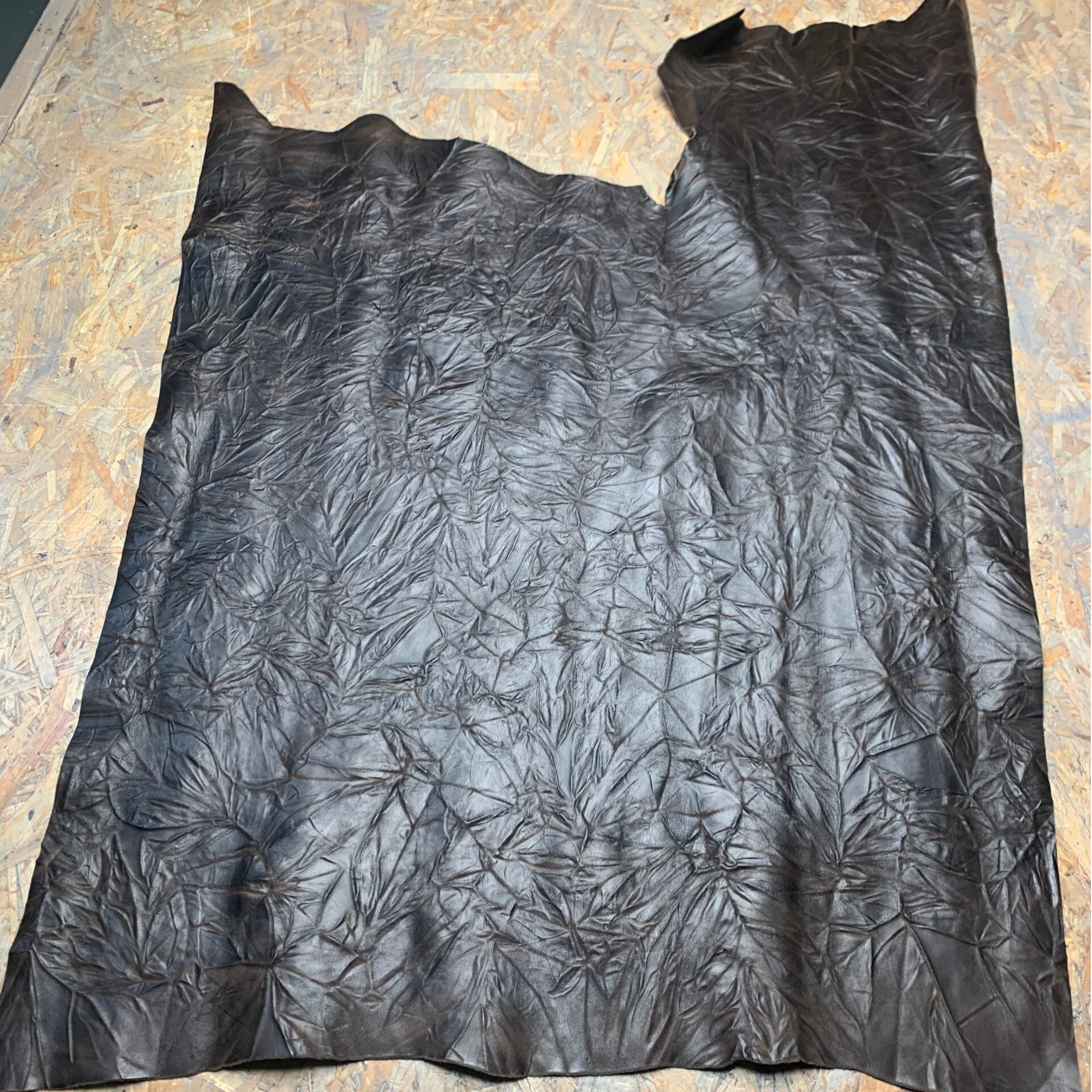 Een prachtige soepele donkerbruine bloemenprint leren lap