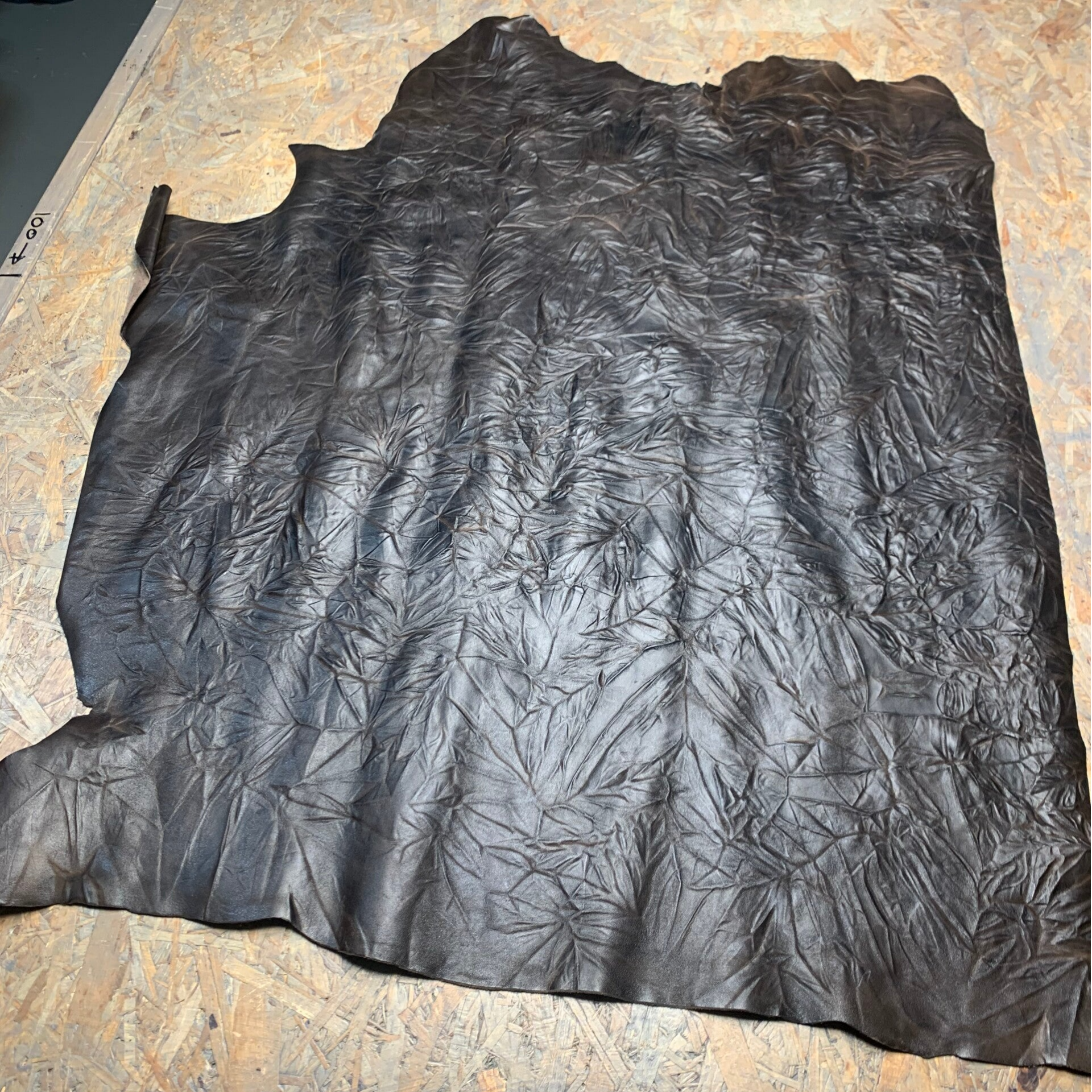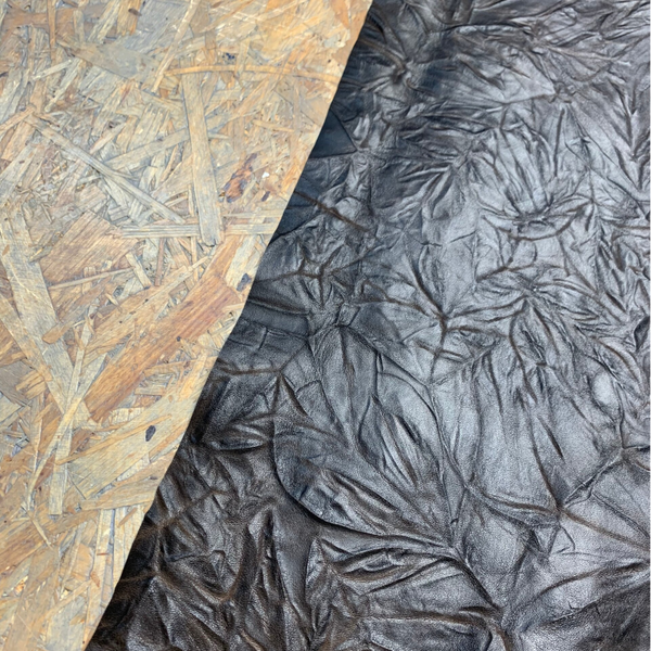Een prachtige soepele donkerbruine bloemenprint leren lap