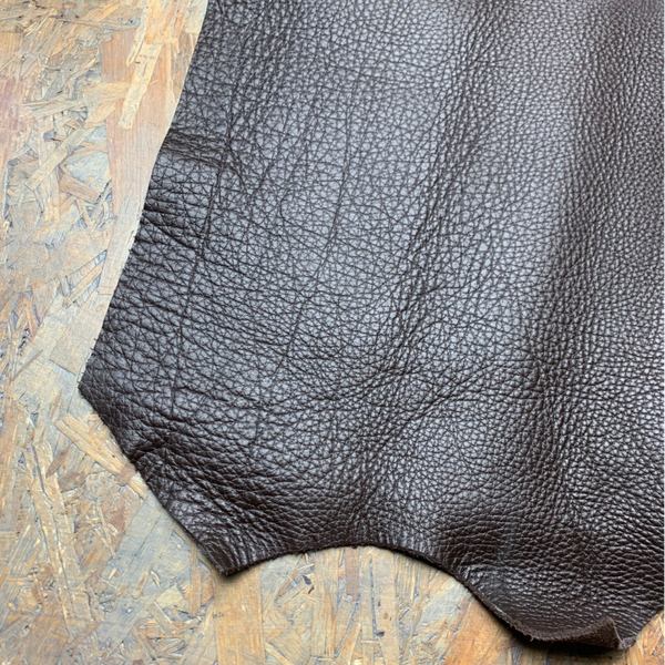 Een soepele doch stevige pebble donkerbruine leren lap